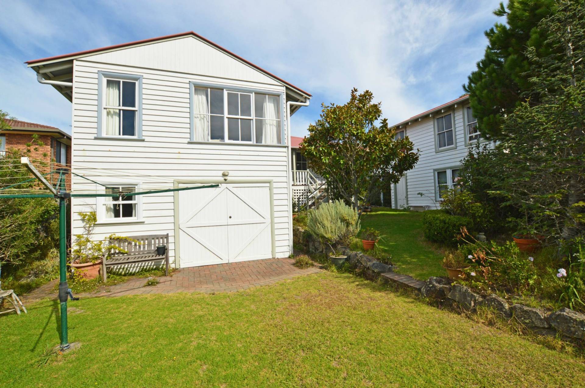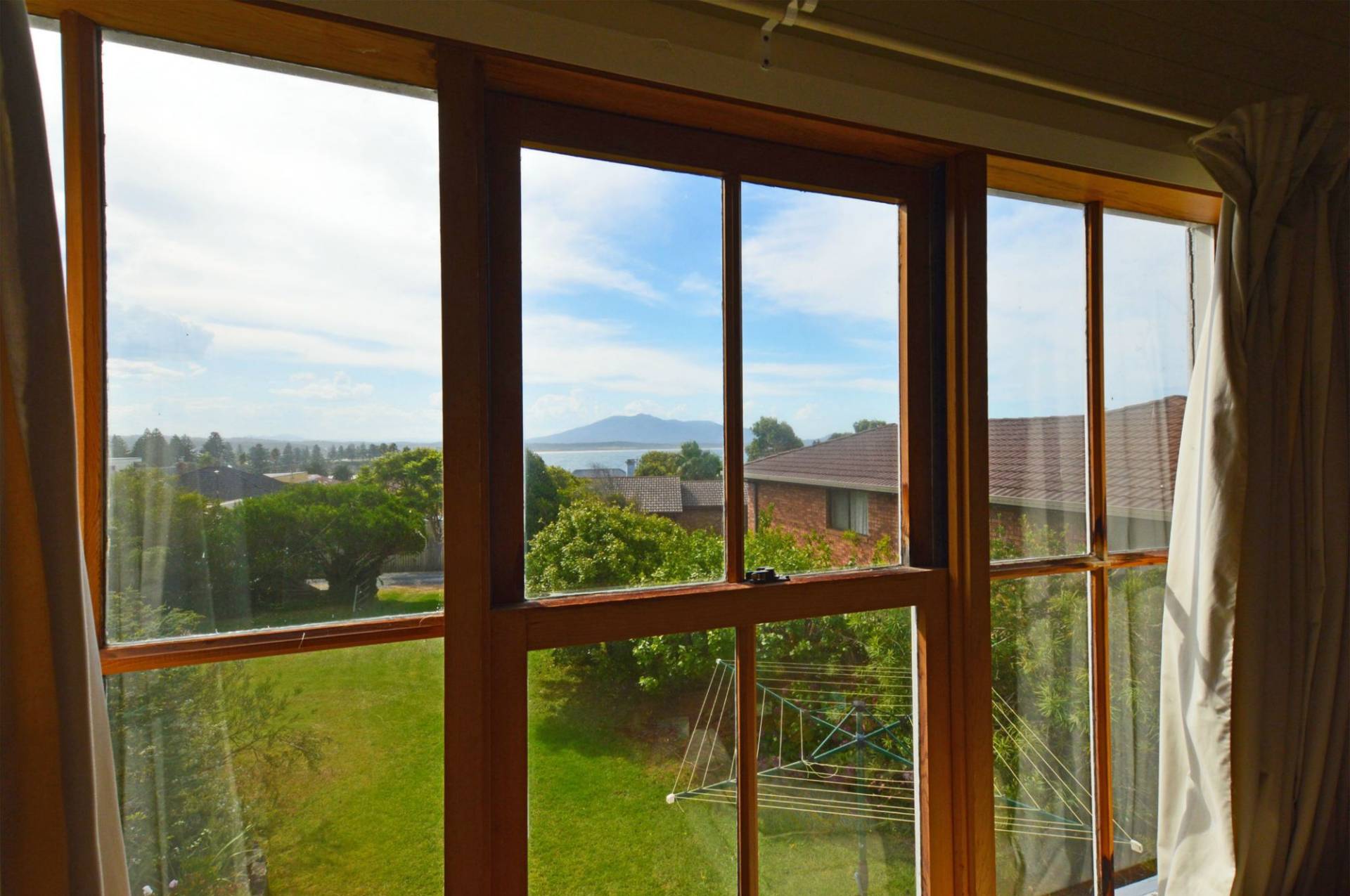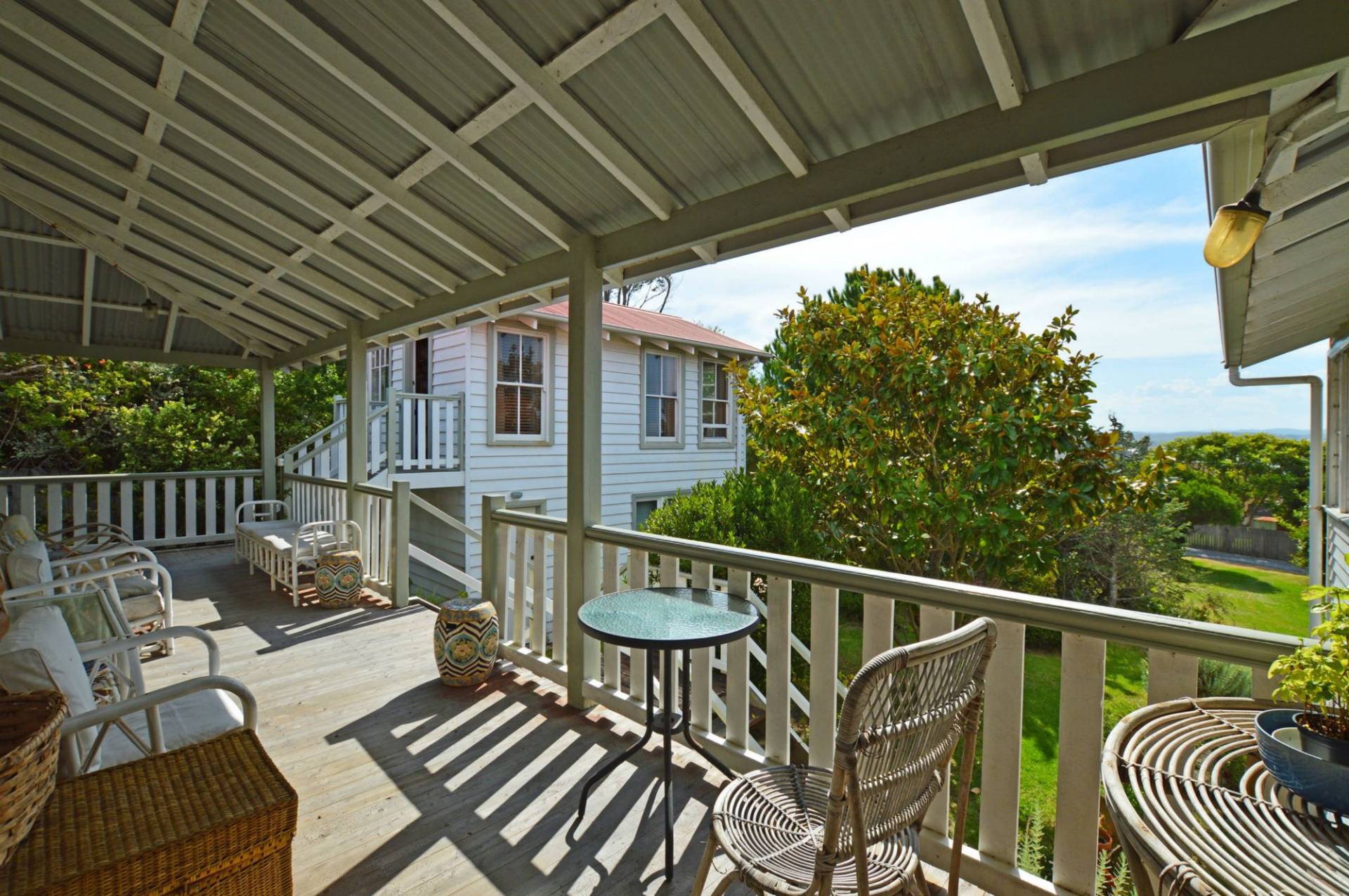 Entry Level From Corunna Street: Sunroom, kitchen/breakfast room, two bedrooms, dining room, large living room, study/studio and bathroom. All rooms with high ceilings. Amazing ocean and mountain views. The north facing veranda is quite private and an ideal alfresco area for entertainment or to sit and relax while enjoying the view.