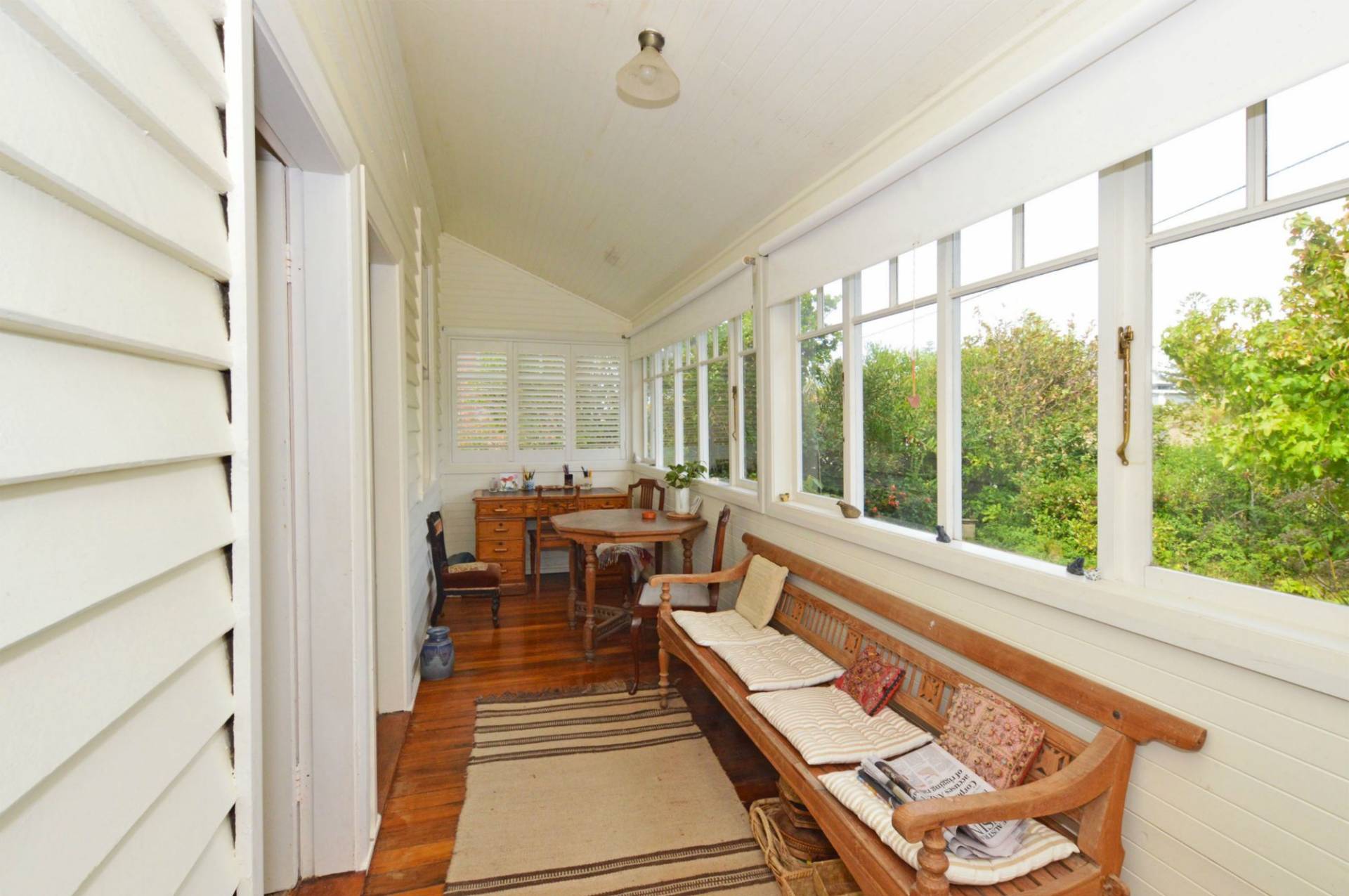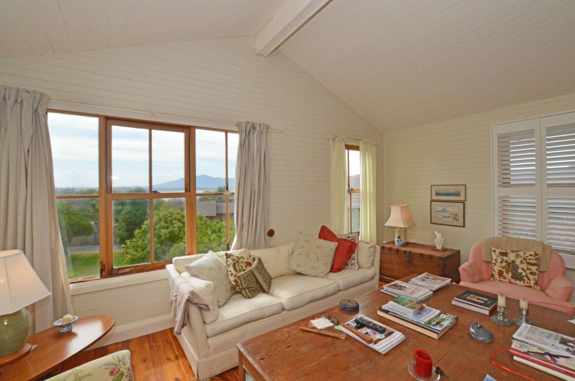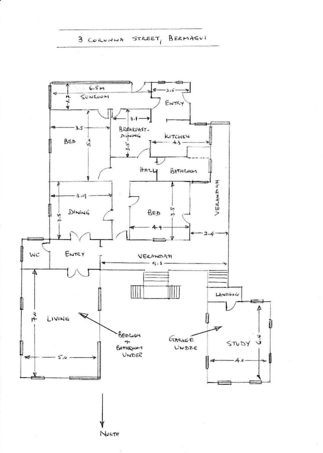 Entry Level From Corunna Street: Sunroom, kitchen/breakfast room, two bedrooms, dining room, large living room, study/studio and bathroom. All rooms with high ceilings. Amazing ocean and mountain views. The north facing veranda is quite private and an ideal alfresco area for entertainment or to sit and relax while enjoying the view.