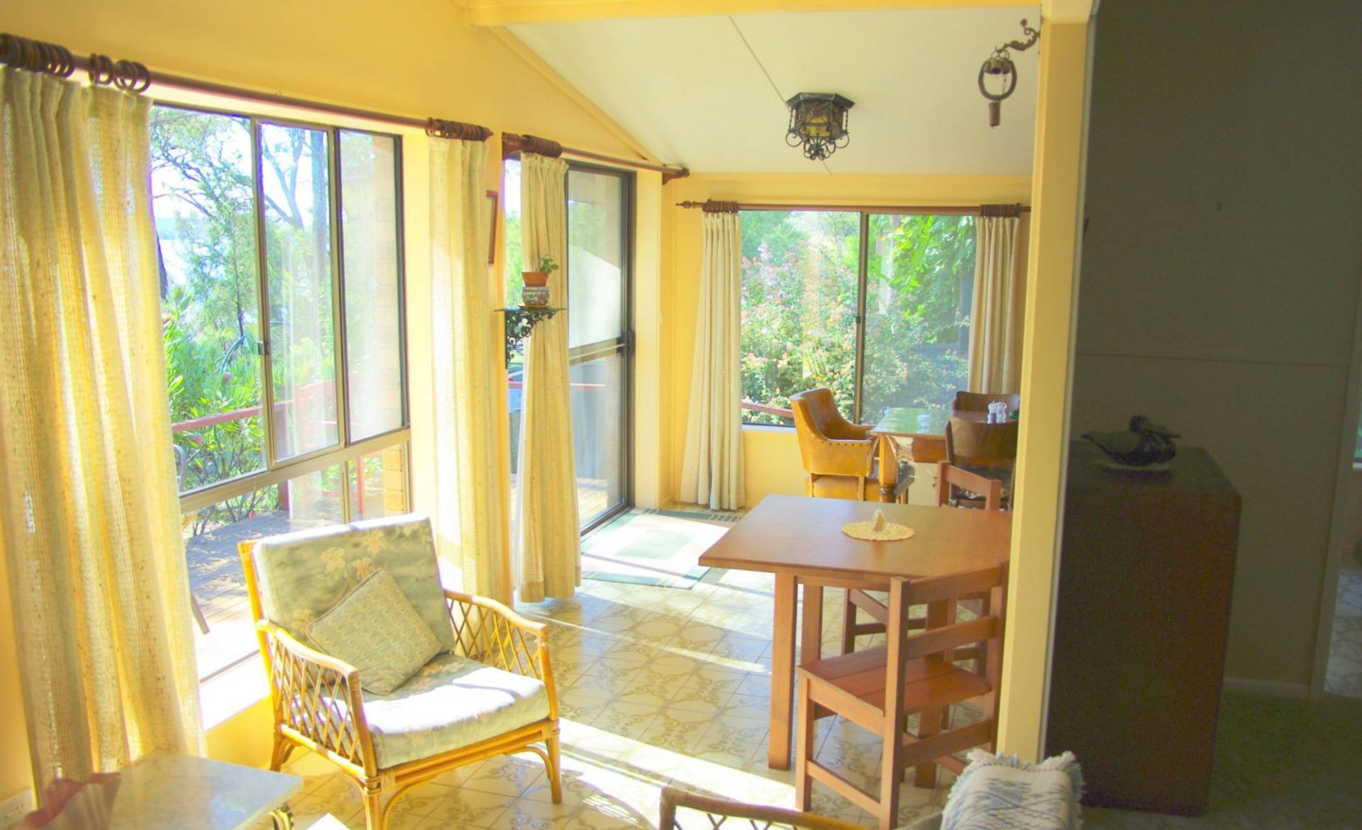 The master bedroom is quite large and has stunning views over Wallaga lake to Guluga (Dromedary) Mountain. The other two bedrooms are of a good size and look into the colourful fernery. Overall, the home has been well maintained and is in very good condition.