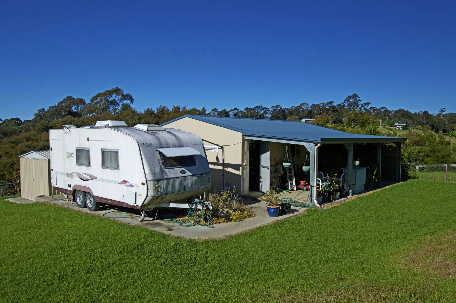 "Camille" - A modern five year old home set on five grassy acres. Just a short drive along a country road and only a few minutes to Narooma. This home offers space for the family, workshop for the trades person and enough space to have a pony or two.