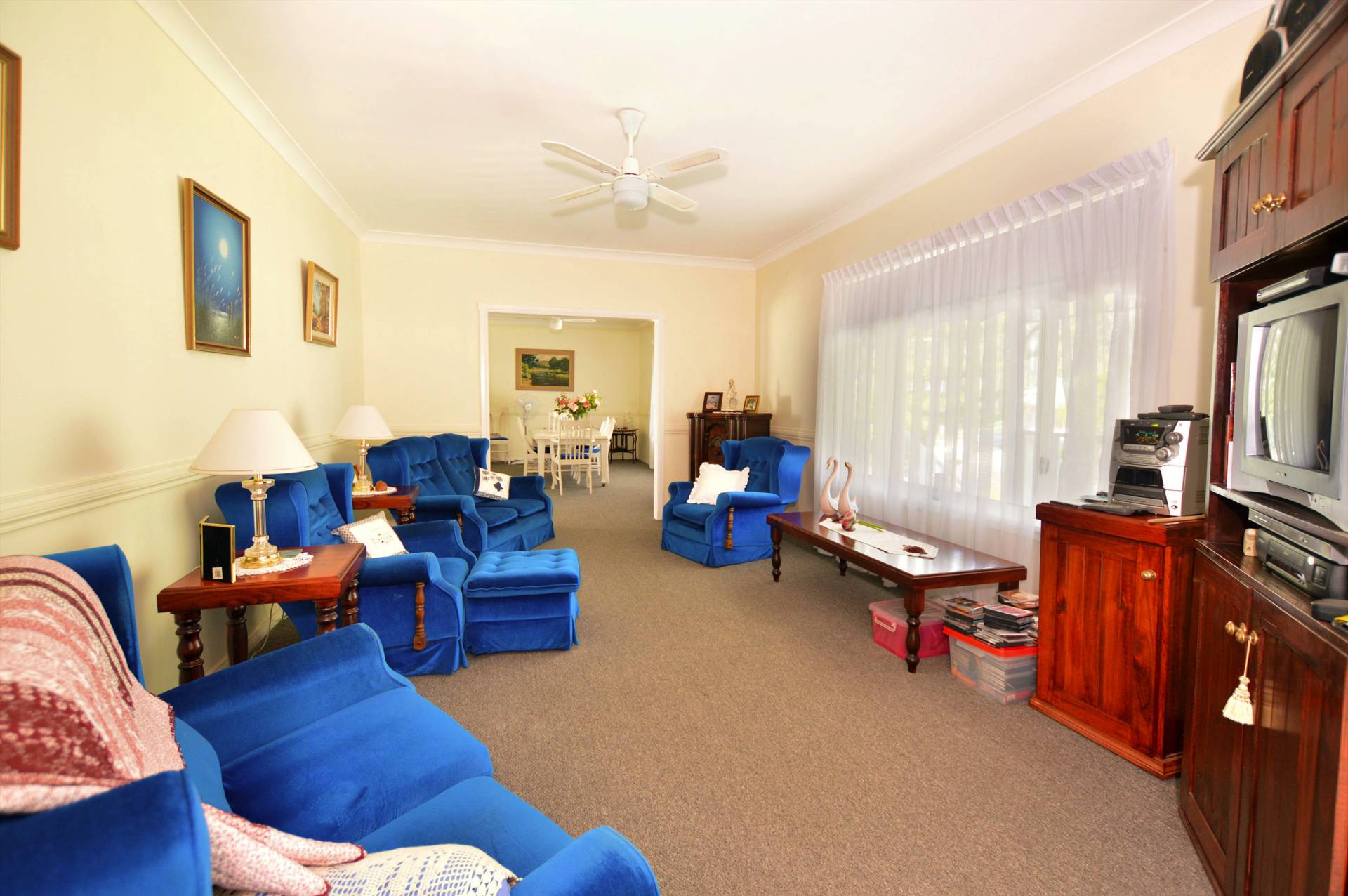 Features include: 9ft ceilings, modern kitchen with walk in pantry, sewing room/office, family room, formal dining room and back to the grid solar. Out the back is a 'Man Shed', cabana, numerous citrus trees, double garage, and plenty of grass for the children to play.