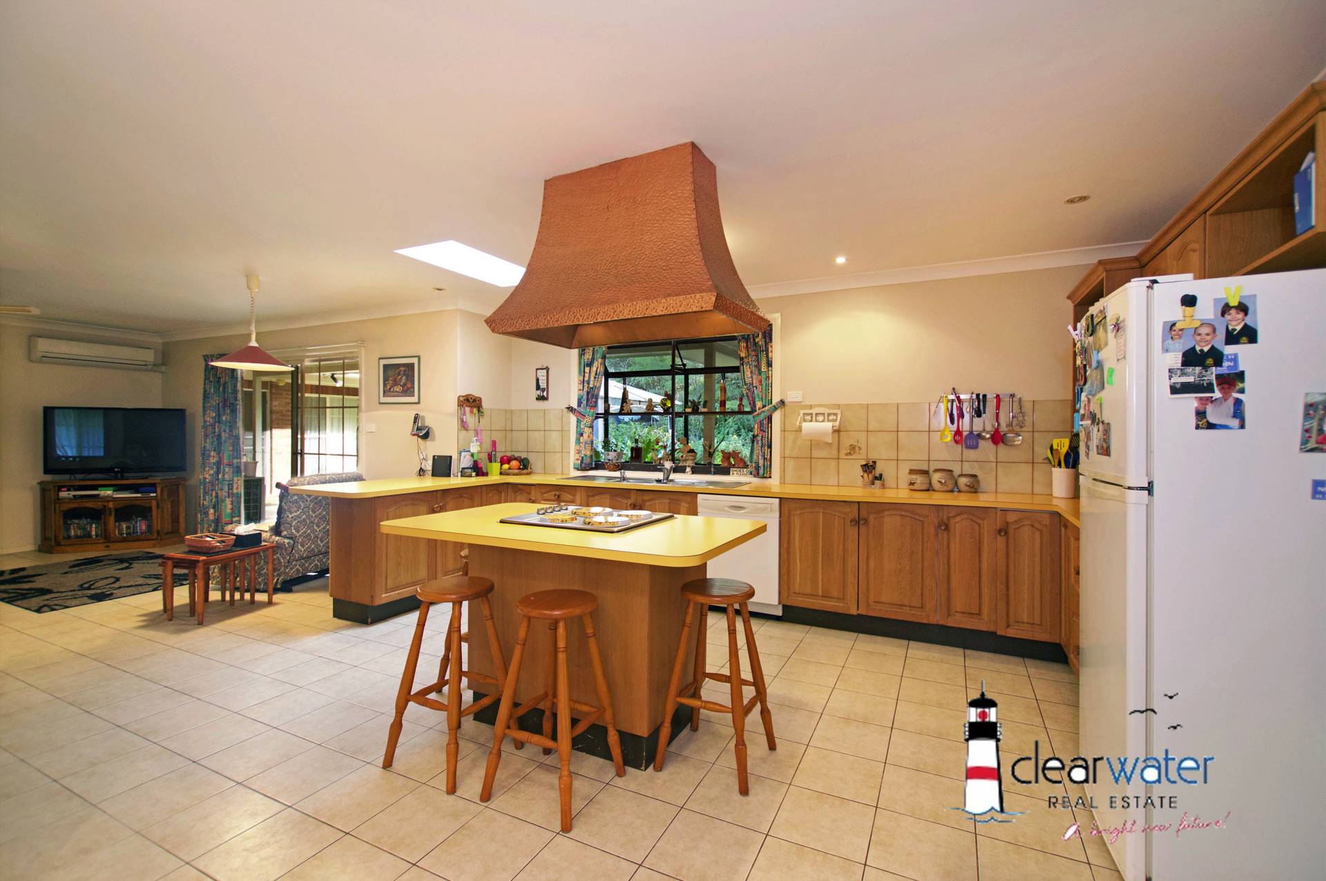 A 5m x 5.5m kitchen with a walk-in-pantry and island bench is the main hub of the home as it adjoins the dining/sitting room and leads out into the courtyard garden.