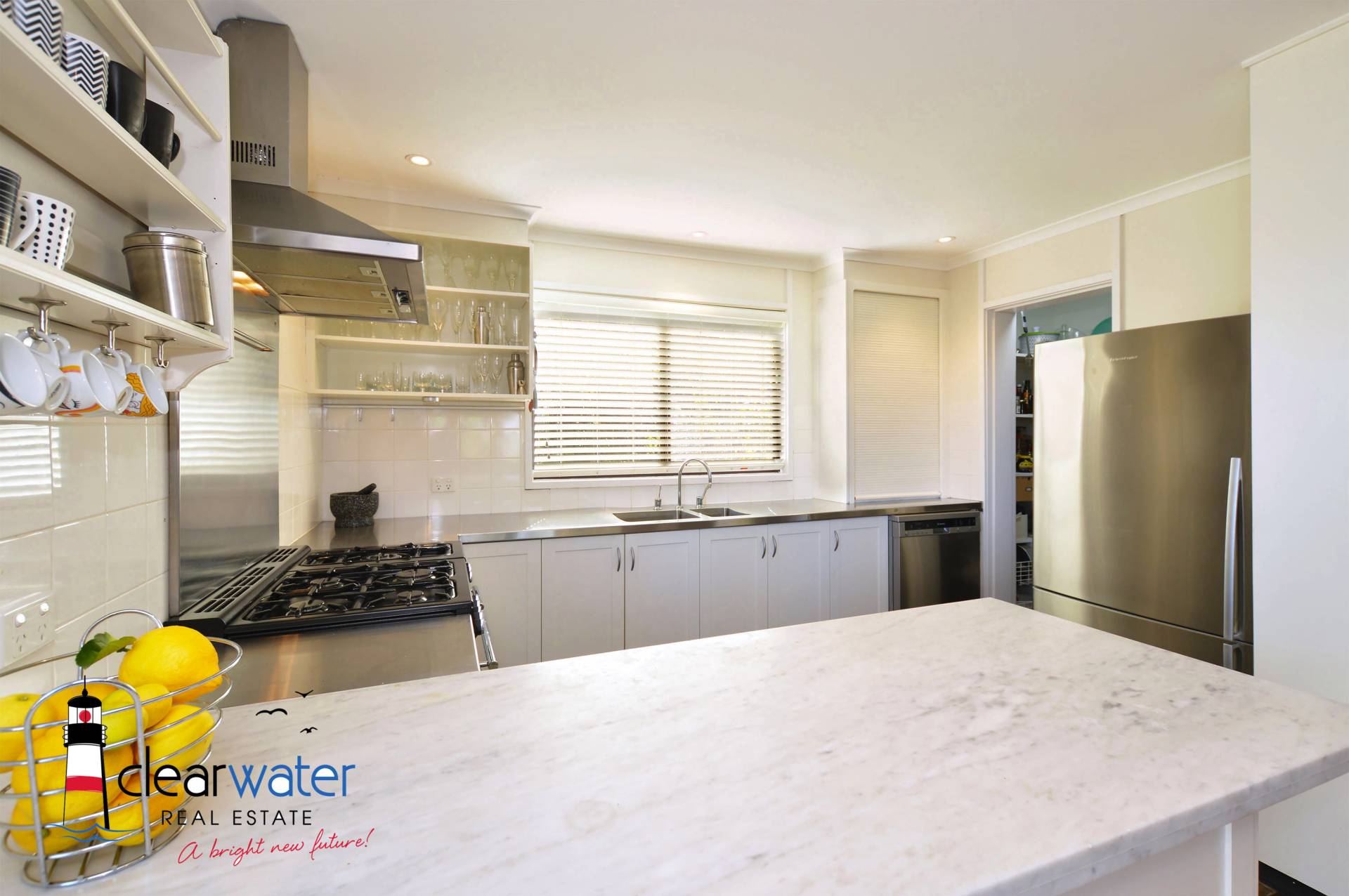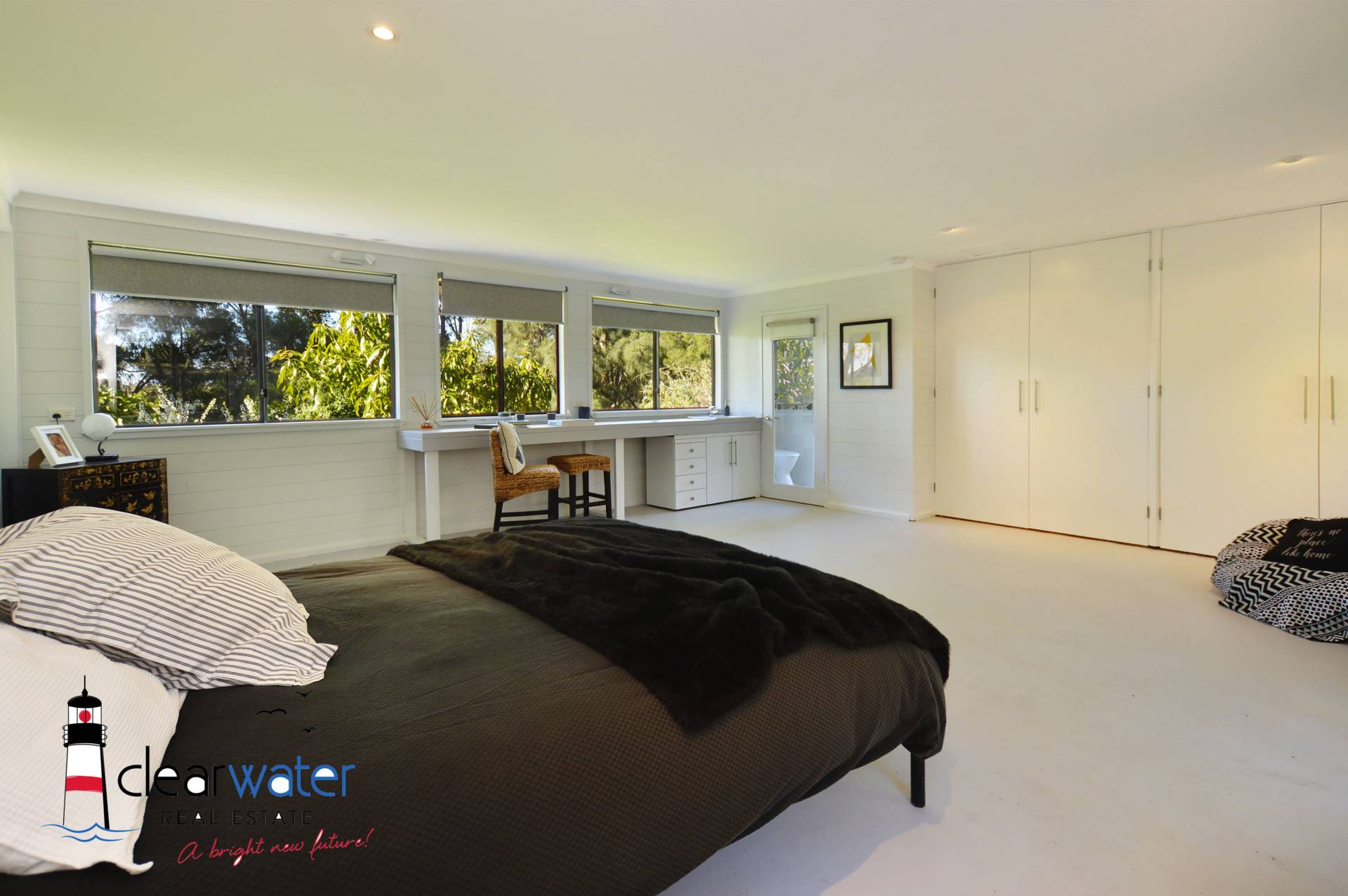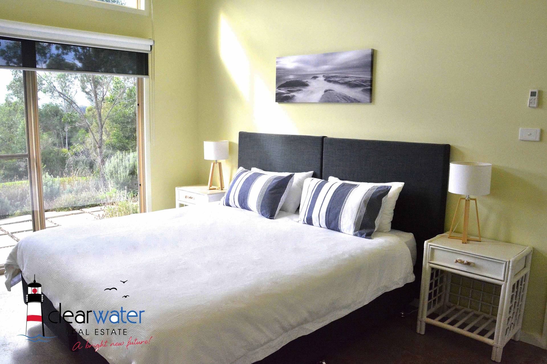Main House: Two good sized bedrooms with professionally fitted robes, central bathroom plus an extra shower and vanity. The main bedroom has stunning lake and ocean views. Both bedrooms open onto the wrap around deck which is ideal to sit and relax to enjoy your first morning coffee/tea. The spacious lounge also opens onto the deck and has extensive views over the farmland and ocean. The chef's kitchen is a real delight with its huge gas/electric cooker, walk in pantry, commercial grade stainless steel and marble bench tops. The dining area opens onto the covered alfresco entertaining area with the louvres (for controlled airflow).