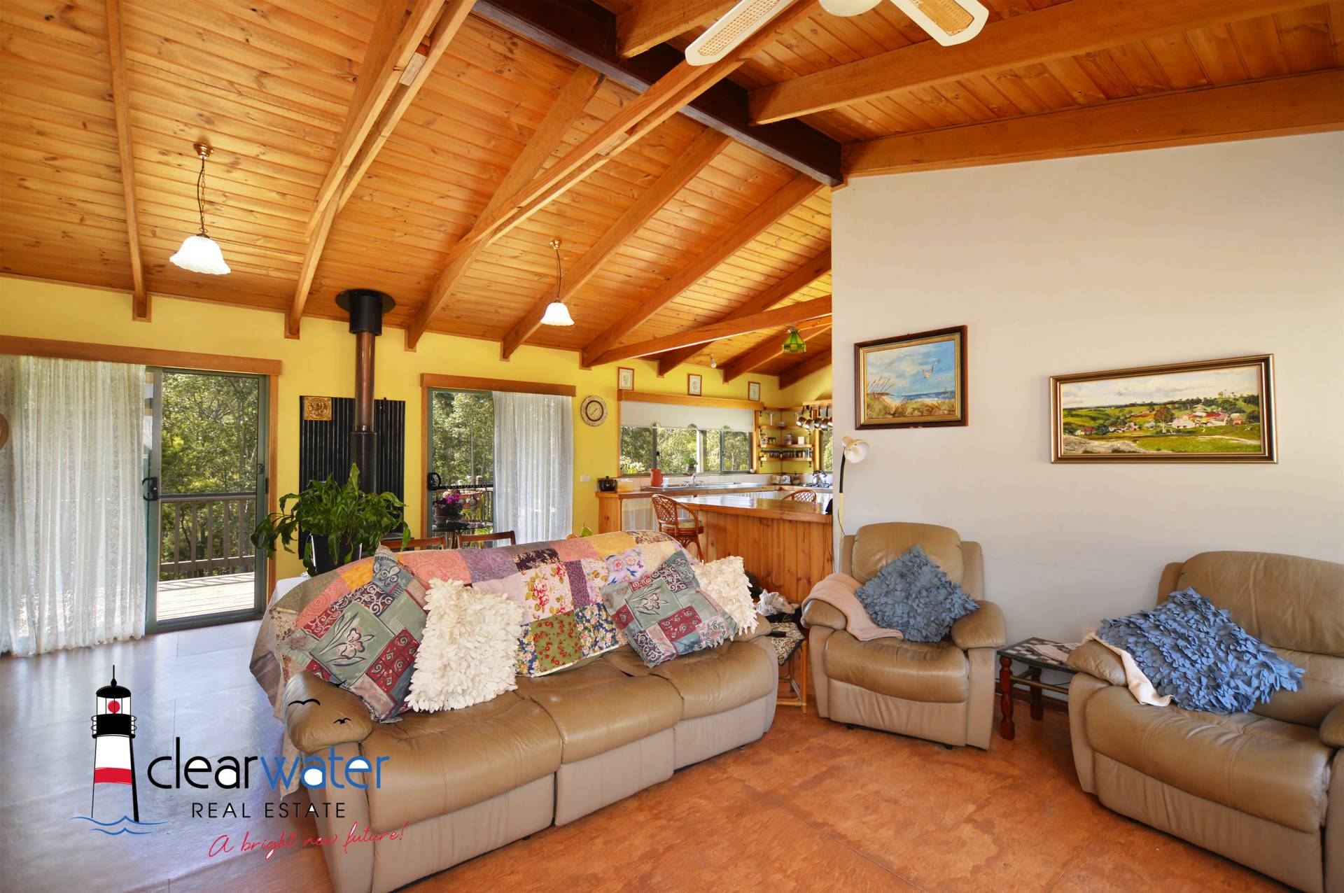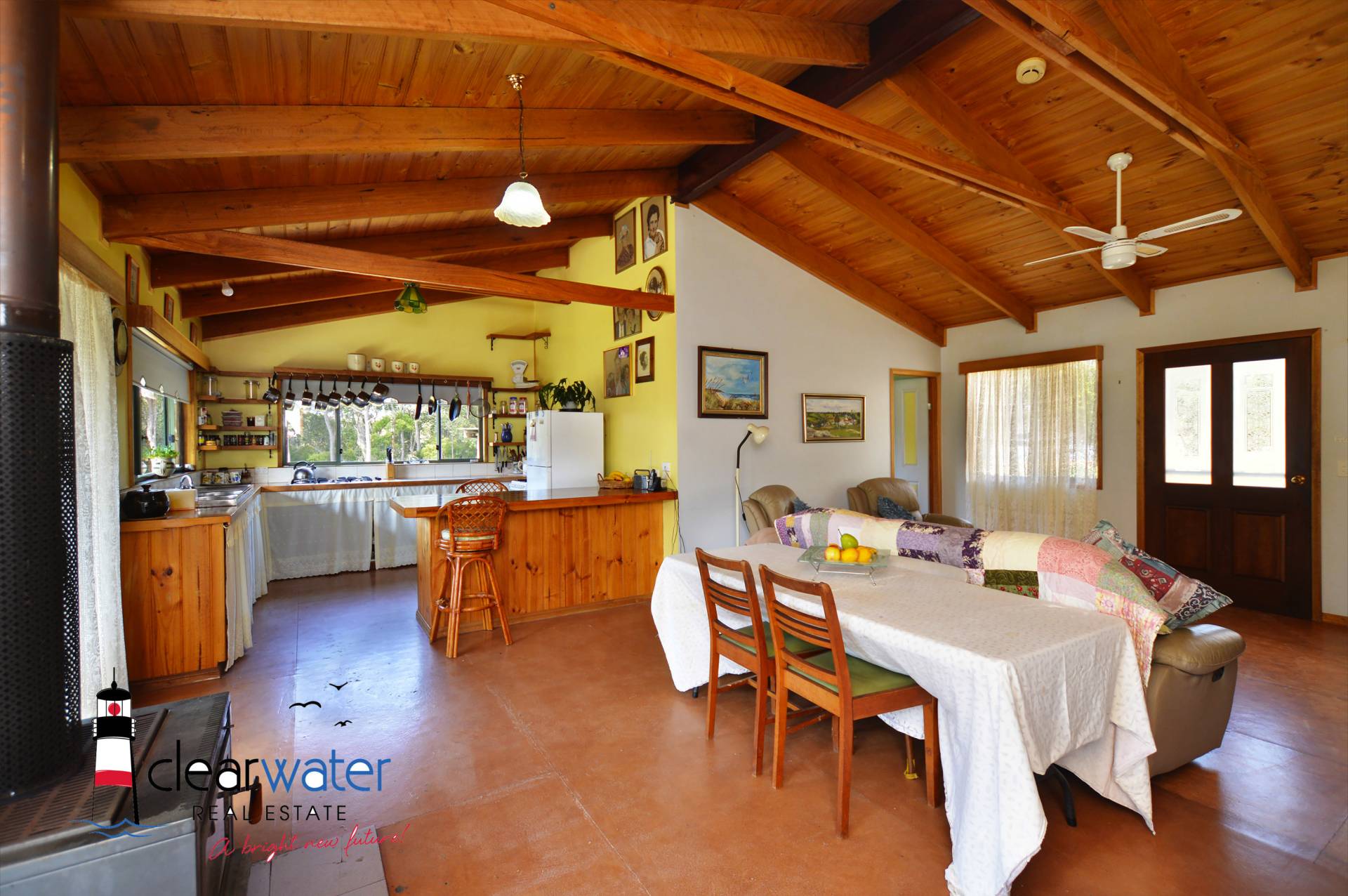 "Abilene" - Just a short drive from Central Tilba is this two bedroom, one bathroom home set on 16 private acres with a large dam and plenty of room for the children to play. The property is secluded and is at the end of a 1 kilometre all weather dirt road. There is no passing traffic, so therefore no dust or road noise. The location is very convenient being only an 8 kilometre drive to Central Tilba, 20 Minutes to Narooma and 12-15 minutes from Mystery Bay and its pristine beaches and scenic ocean views.