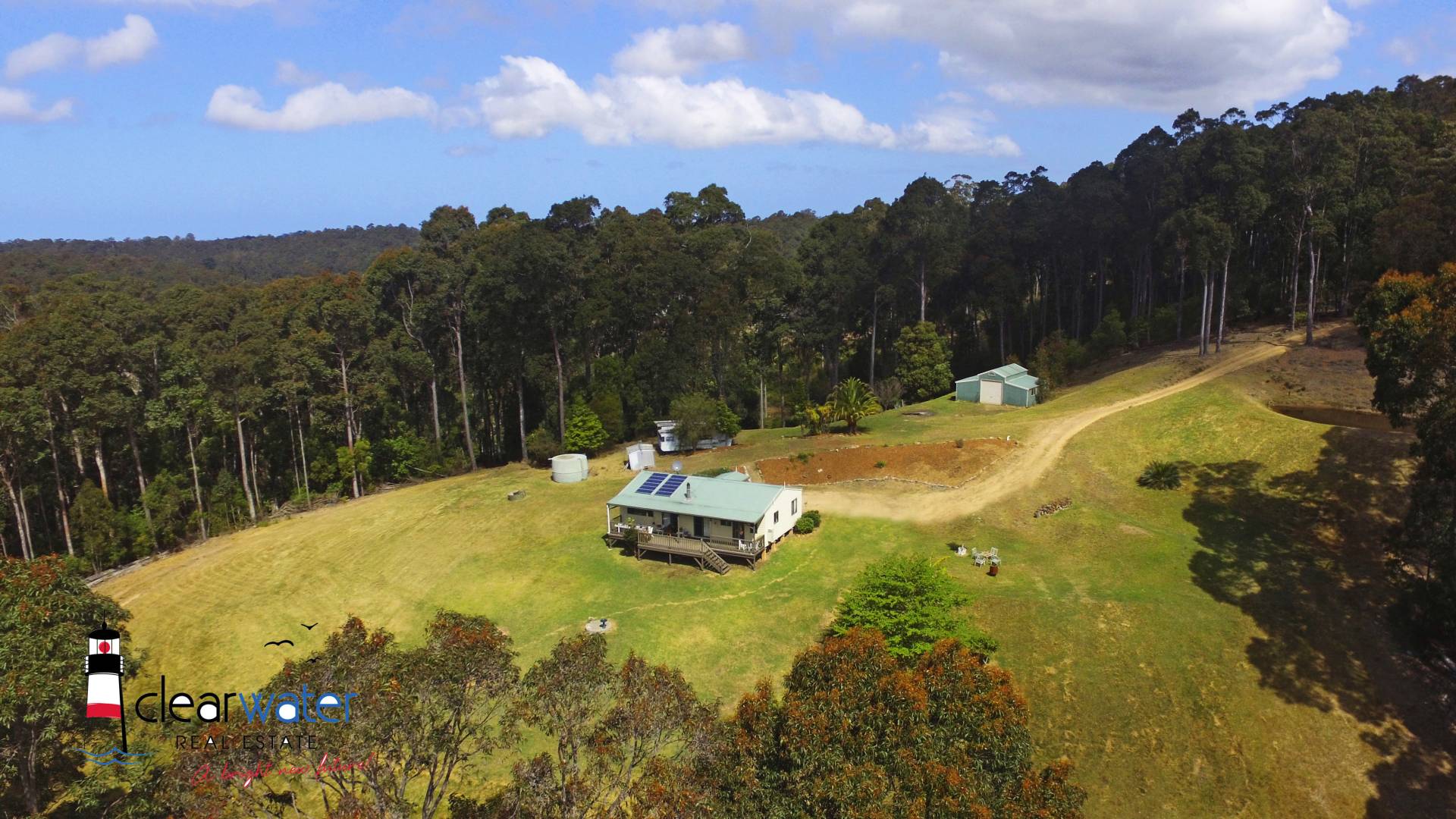 Features: 16 Acres with approximately five cleared acres, state forest on two boundaries, large dam with yabbies, caravan & annex (needs some repair), small tool shed and several fruit trees. The home is powered by a full solar system (24 volt) that can run up to 3800 watts, so therefore, no power bills. Water storage = 11,000 gallons and a dam. The American Barn can park two cars and there is enough space for a quad bike, trailer, boat or a huge workshop.