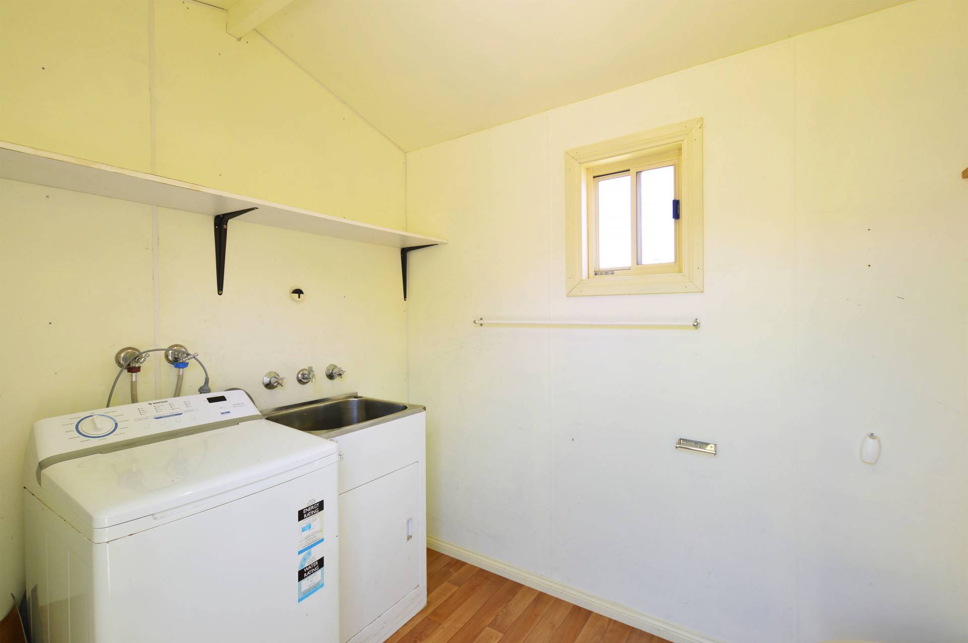 Features: two bedrooms, central bathroom, separate toilet, open plan kitchen and living area. There is a large covered veranda on two sides, single lock up garage, under house storage and separate laundry with a toilet.