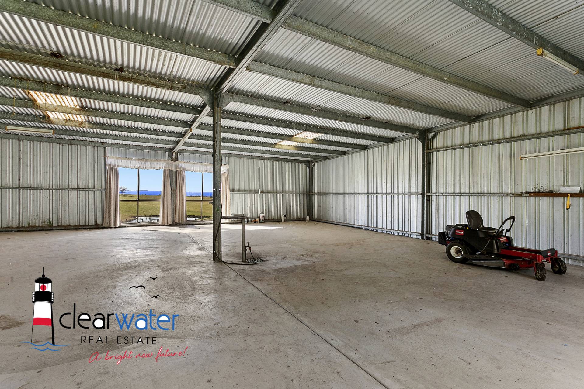 Shedding: A huge farm shed (approx 60 x 40 foot) with power, water and amazing views over the neighbouring farmland to Montague Island. There is also a separate double garage with a concrete slab and power.