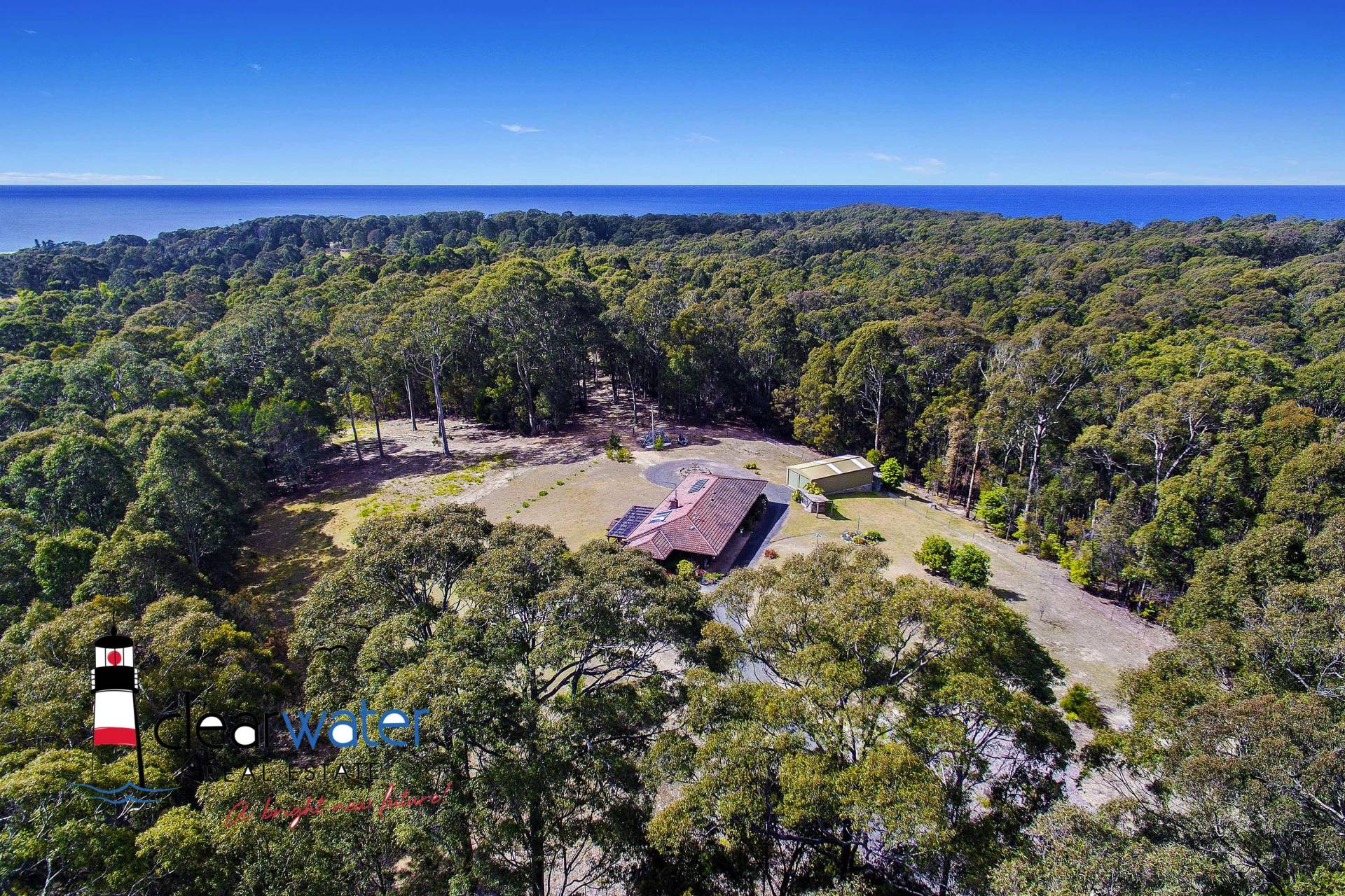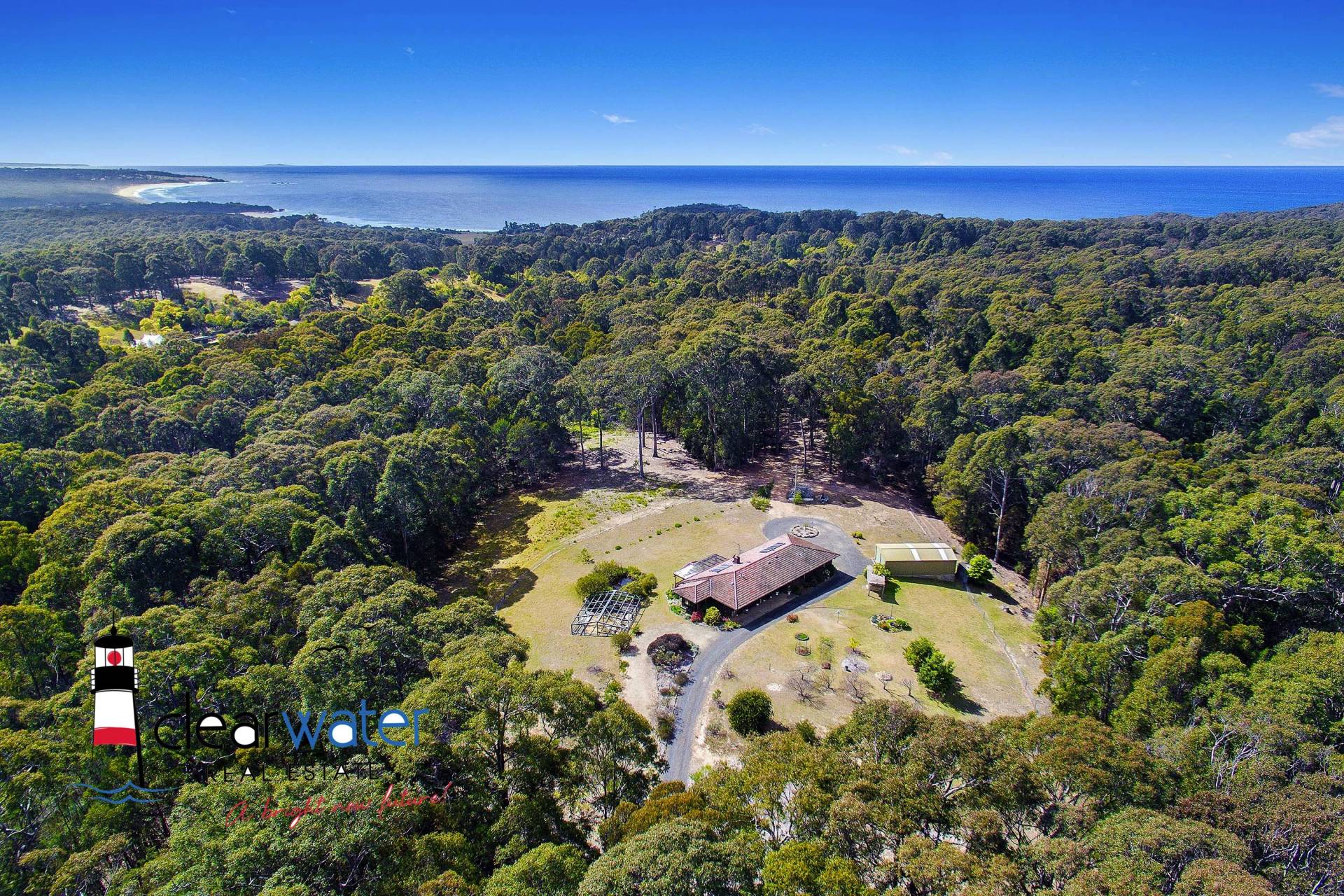 The Home: Brick and Tile, 9ft ceilings, four bedrooms with three of them having ocean views, a large central bathroom, separate toilet and generous laundry. The lounge area has a slow combustion wood heater and easy access to the alfresco covered patio with ocean views. A large bay window is a dramatic feature of the dining area with its views of the property and natural spotted gum forest. A well equipped timber kitchen features a 900mm gas stove, dishwasher and spacious island bench.