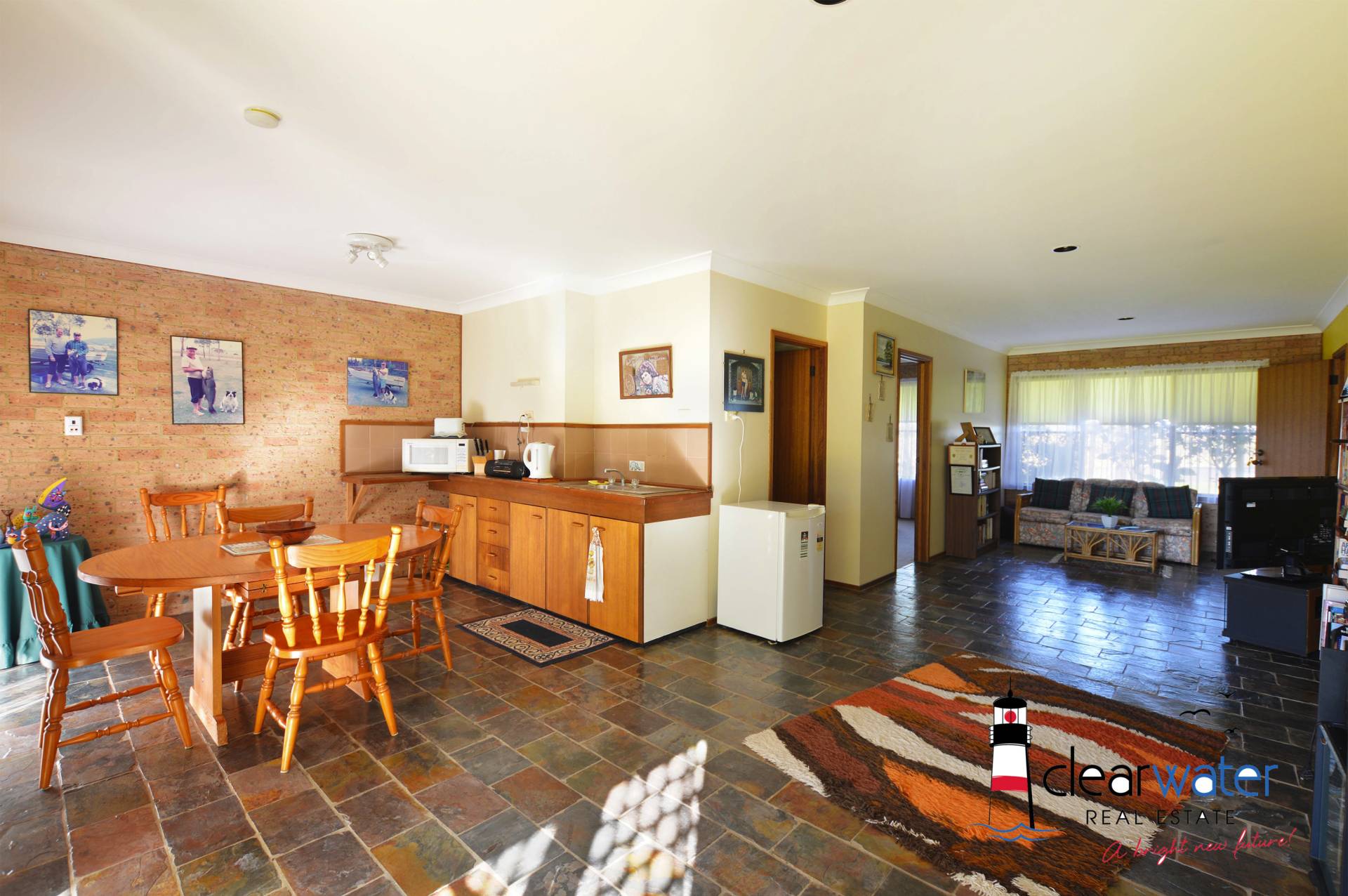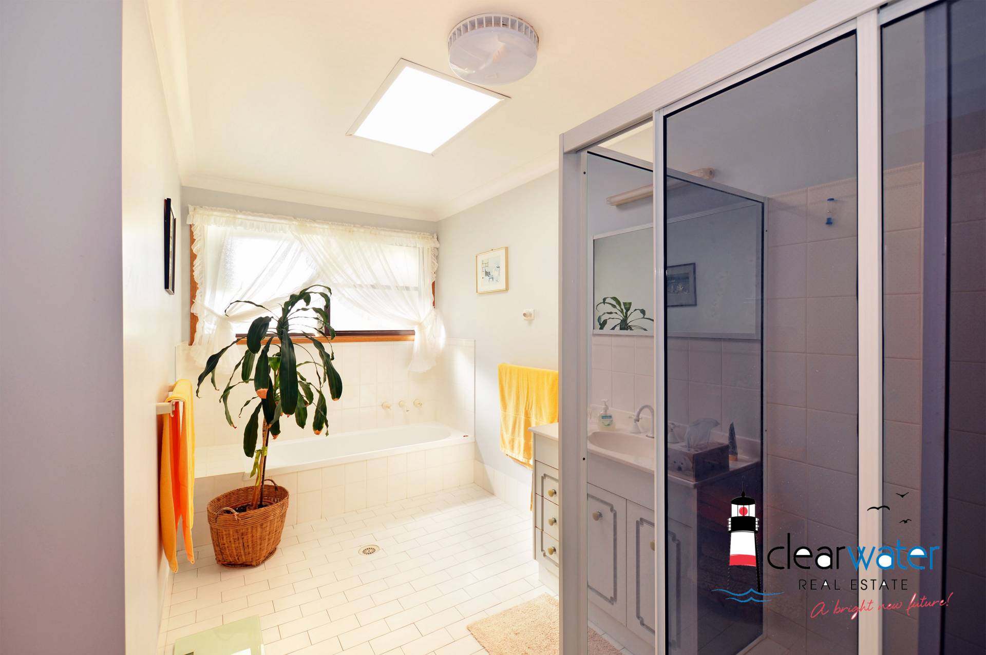 Outside: A cosy corner of the garden has a covered barbecue area, paved space for extra tables and chairs and a garden shed with concrete floor. The block is fully fenced into two separate yards, one with several mature fruit trees. There is also an "envirocycle" system in place and two 5,000 litre water tanks. An outdoor shower is ideal when you come back from the beach. Several seats can be found around the garden so you can sit and relax. There is also a Solar hot water system on the roof.