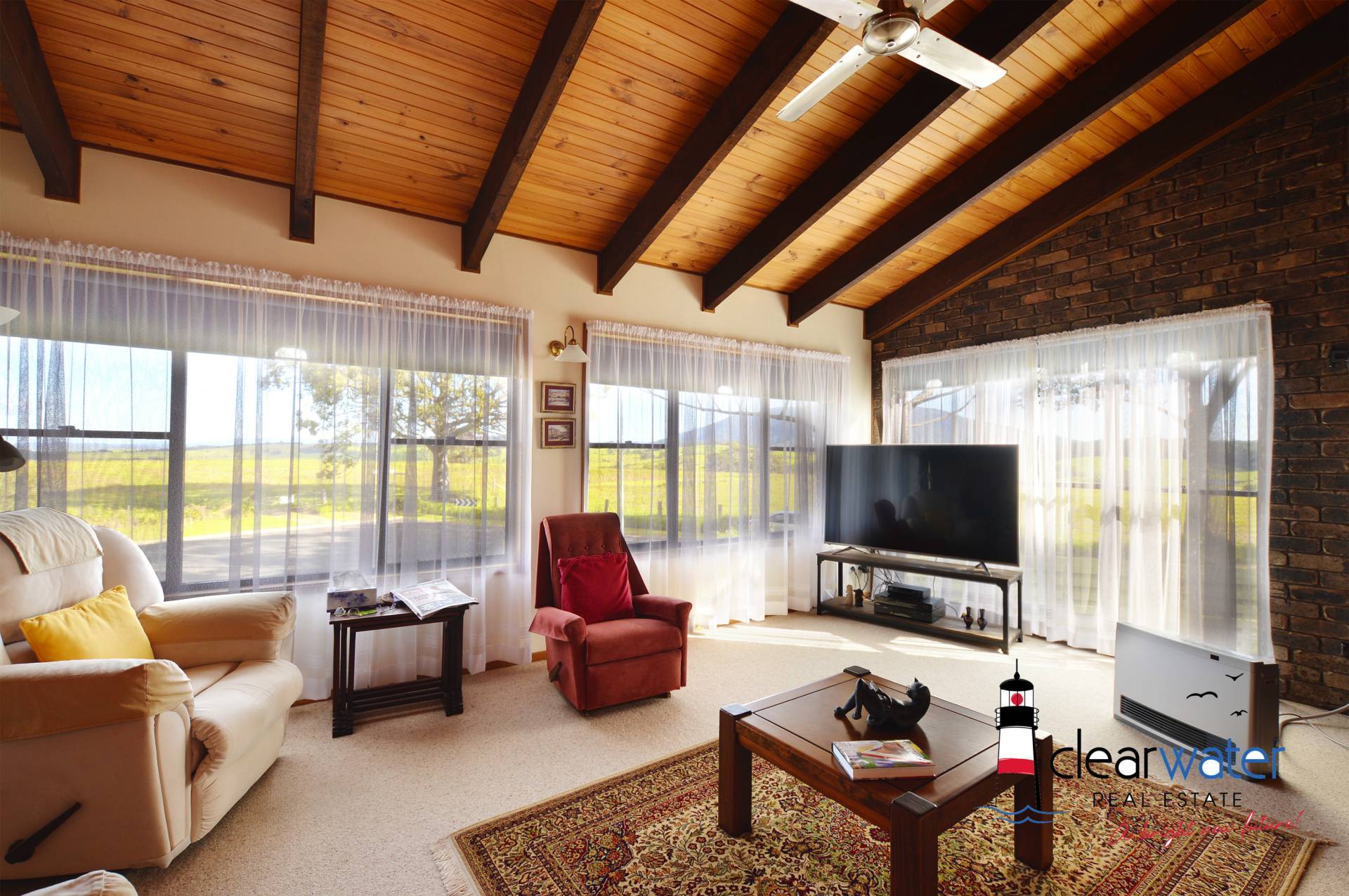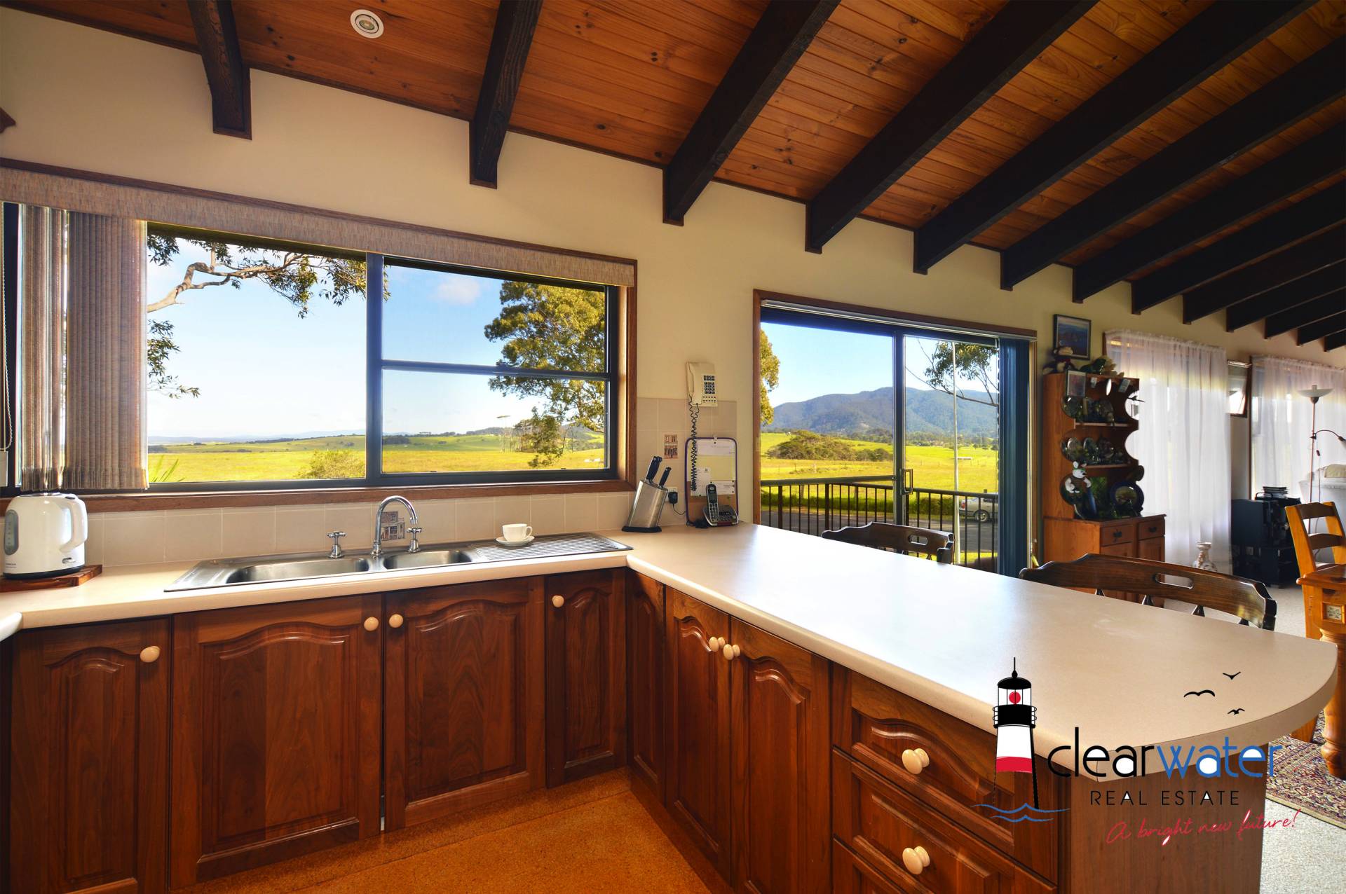 Views: Scenic hinterland views over grassy farmland towards Gulaga (Dromedary Mountain), Najanuga (Little Dromedary), Tilba Lake, Murunna Headland and the ocean to Bermagui in the distance.