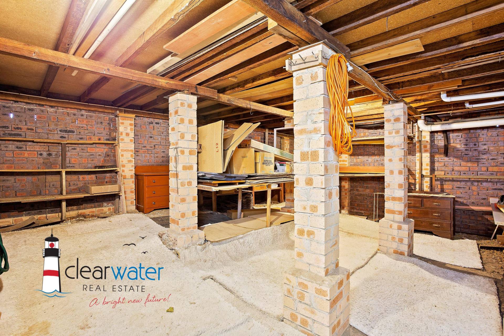 Garage: The larger size single garage has workshop space and could park two small cars. There is also under house storage accessible from the garage. Entry to the downstairs living area is also available through the garage or via a back entrance.