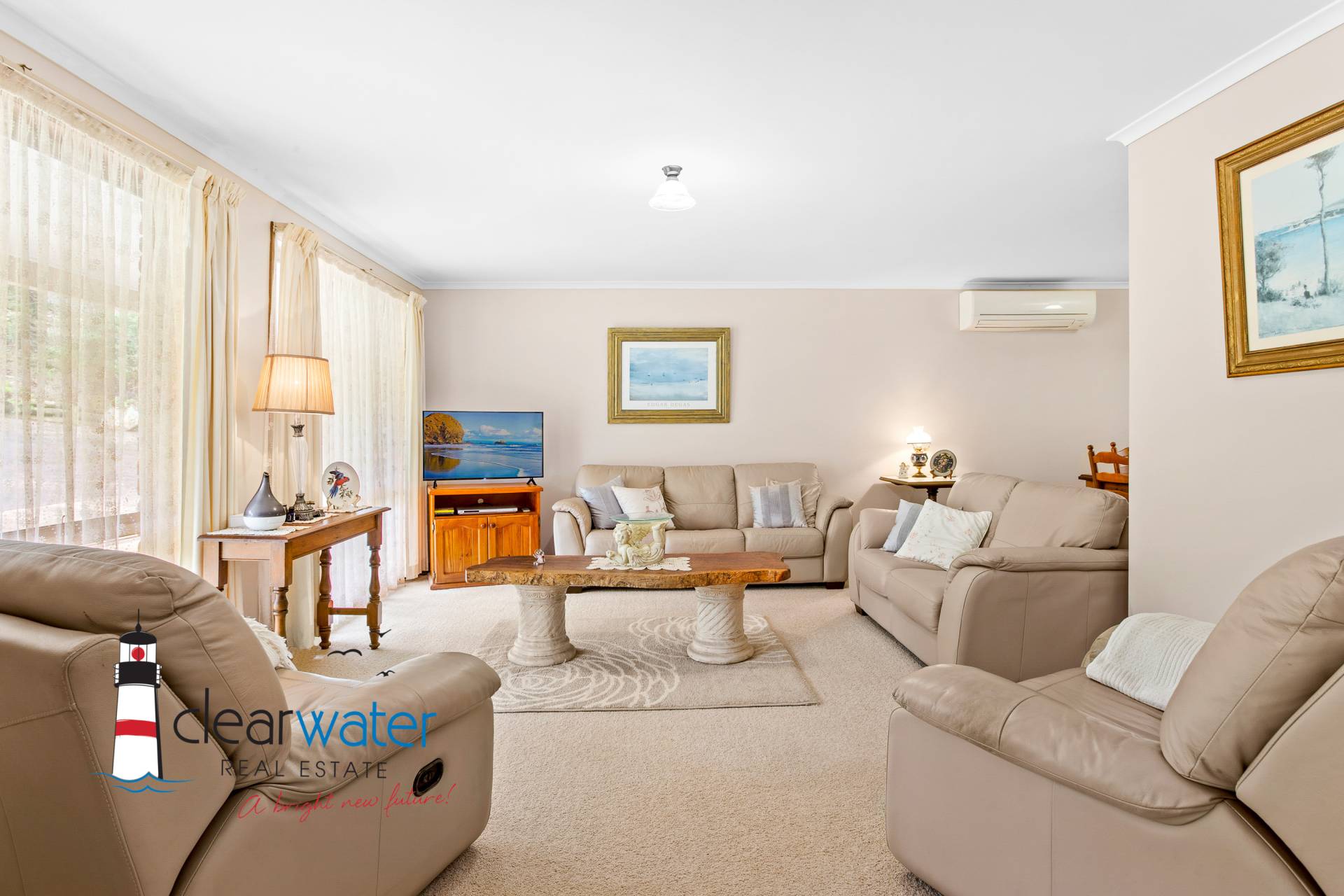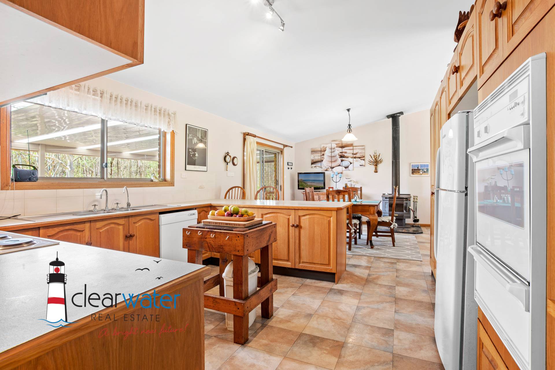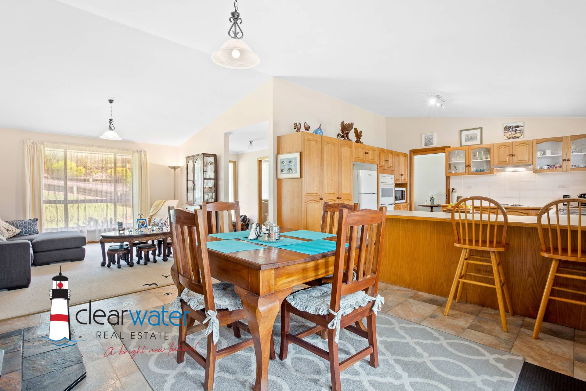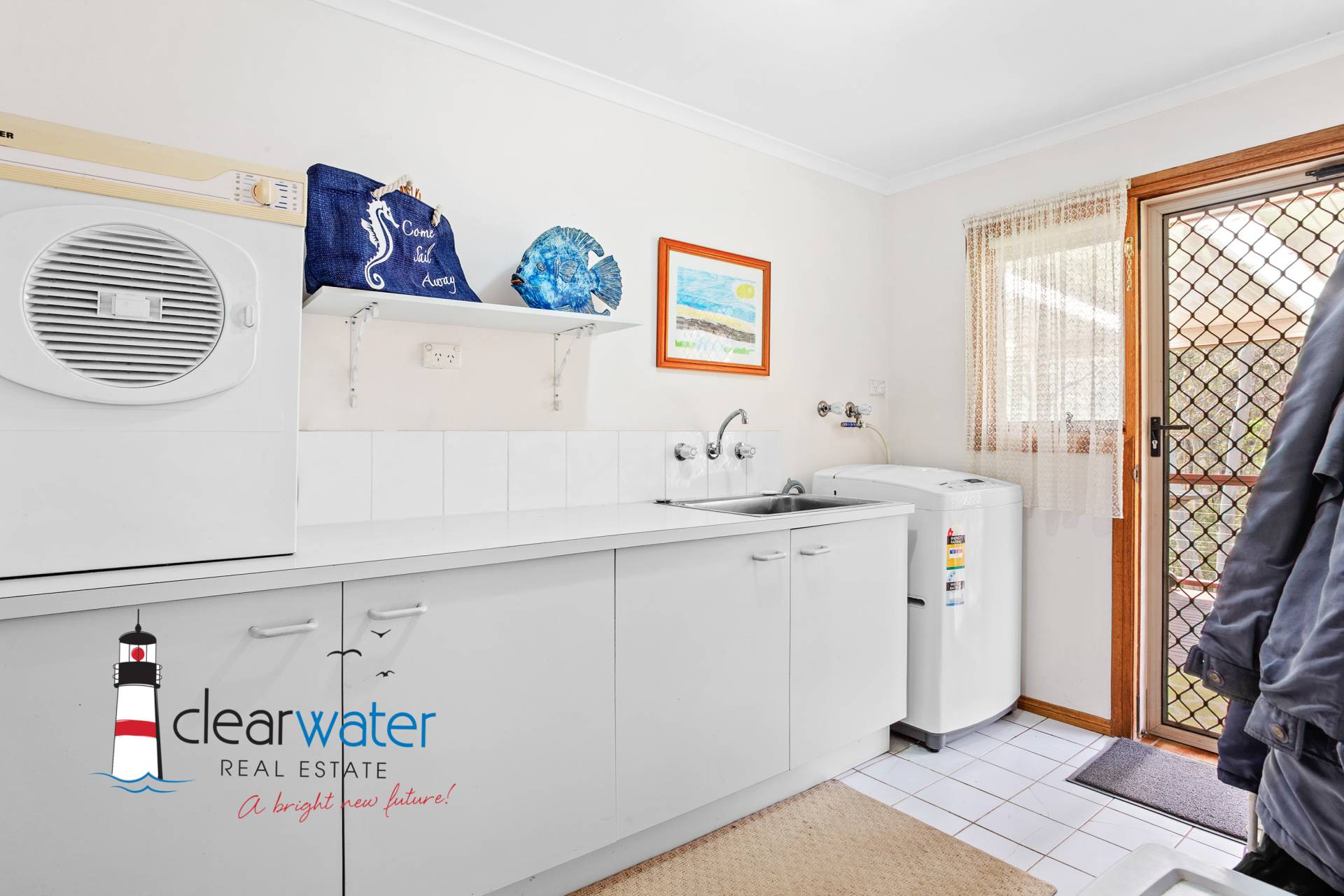 Features: Centrally located kitchen with informal dining/family area plus formal dining/lounge room. Sliding glass doors allow easy access onto the large covered entertaining deck at the rear which backs onto the public walkway to the river. Enjoy the coastal breezes, privacy and comfort that comes with owning a home with little to do.