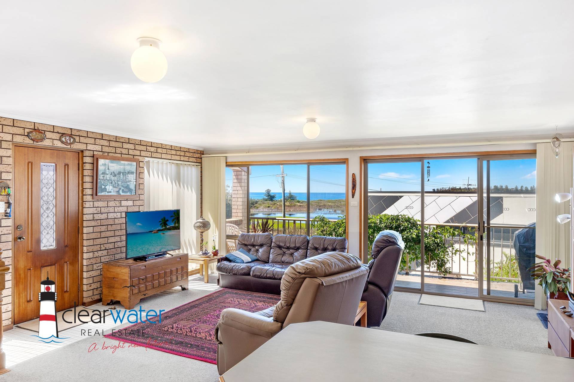Entry Level: Single lock up garage with internal access, extensive ocean and wetland views from the open plan kitchen/dining/lounge area. The covered patio is perfect for family gatherings or a quiet place to sit and enjoy the whales as they pass (in season).