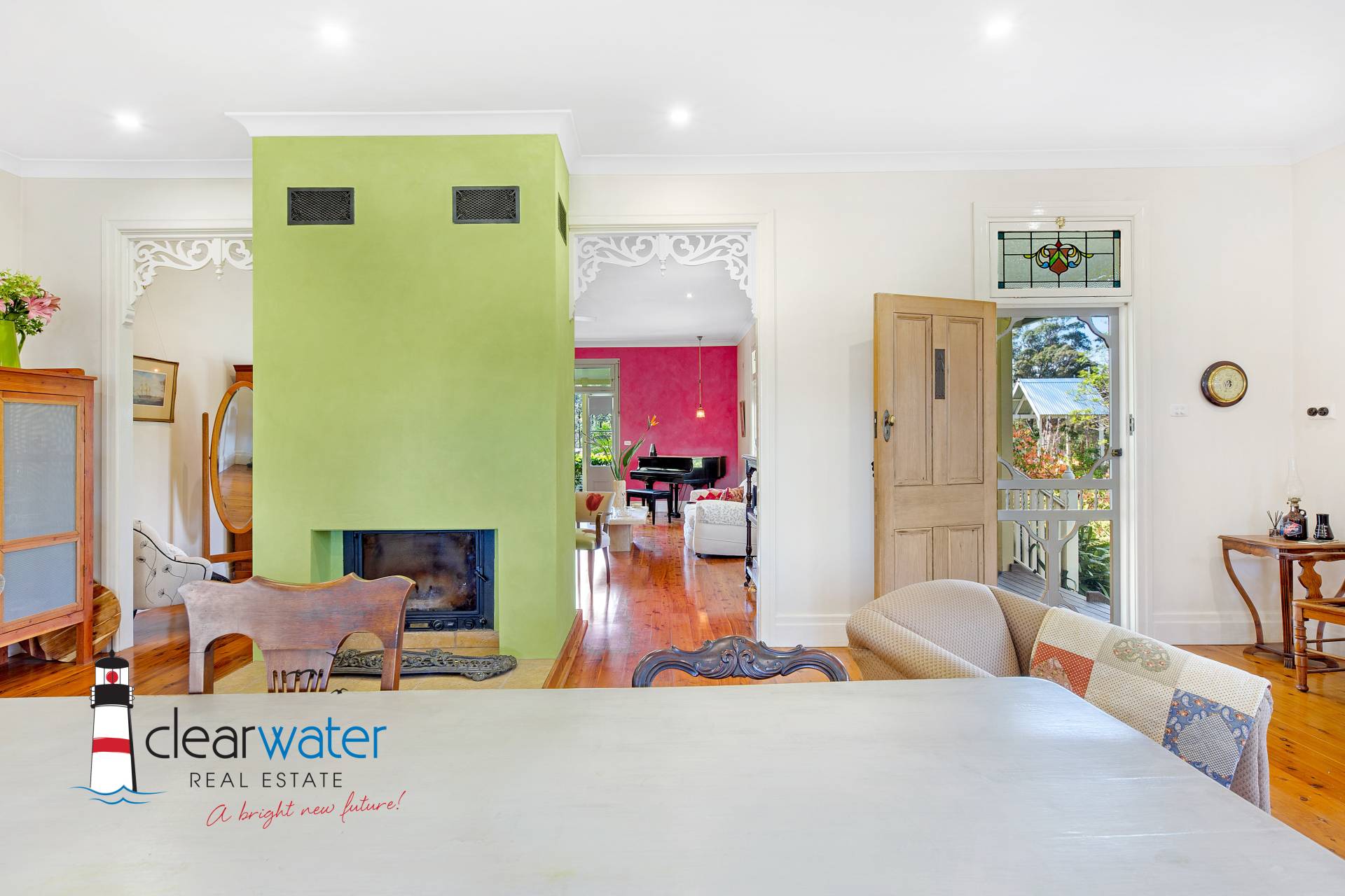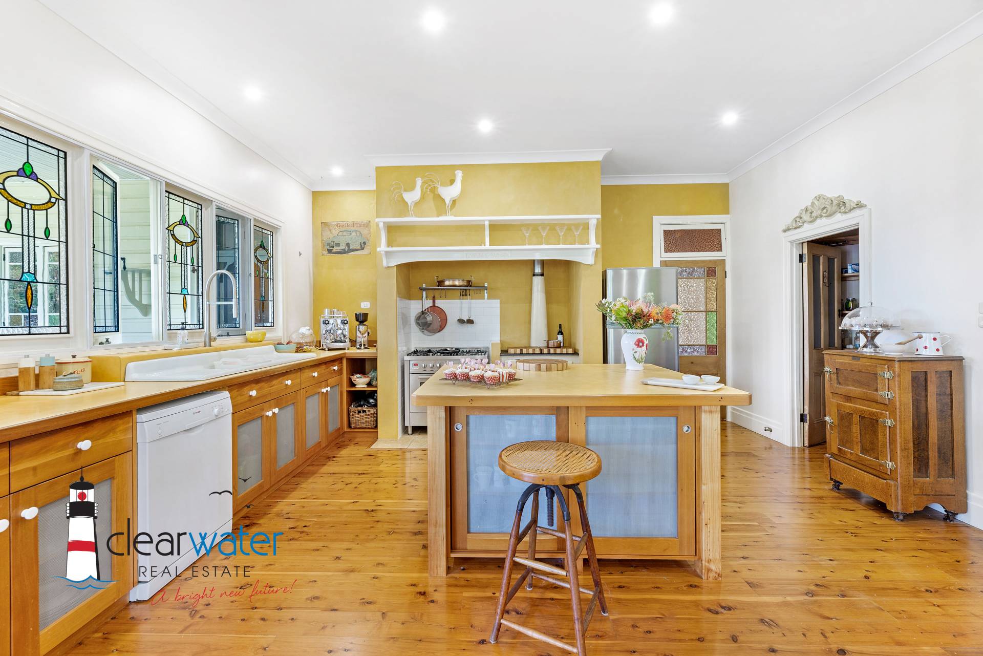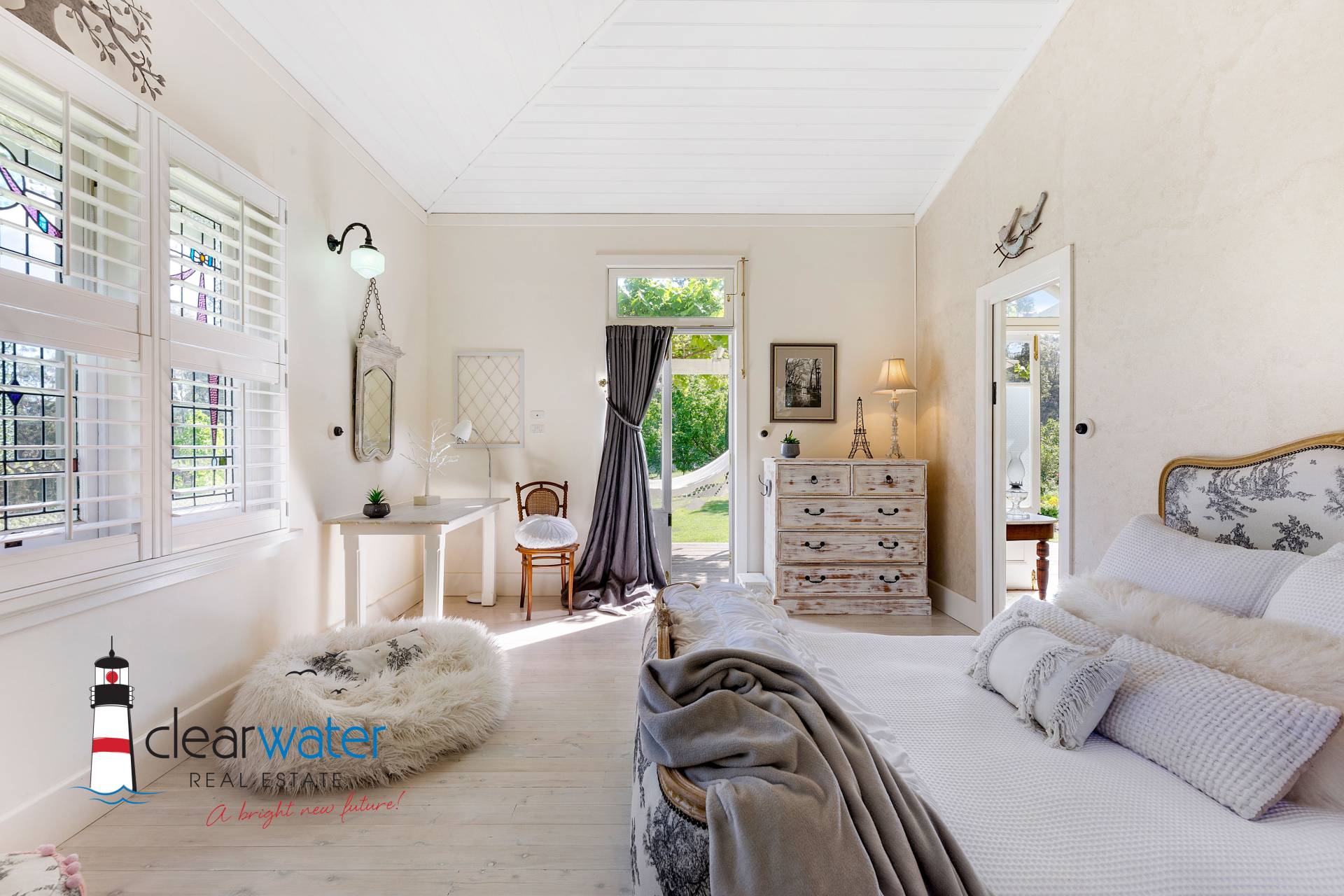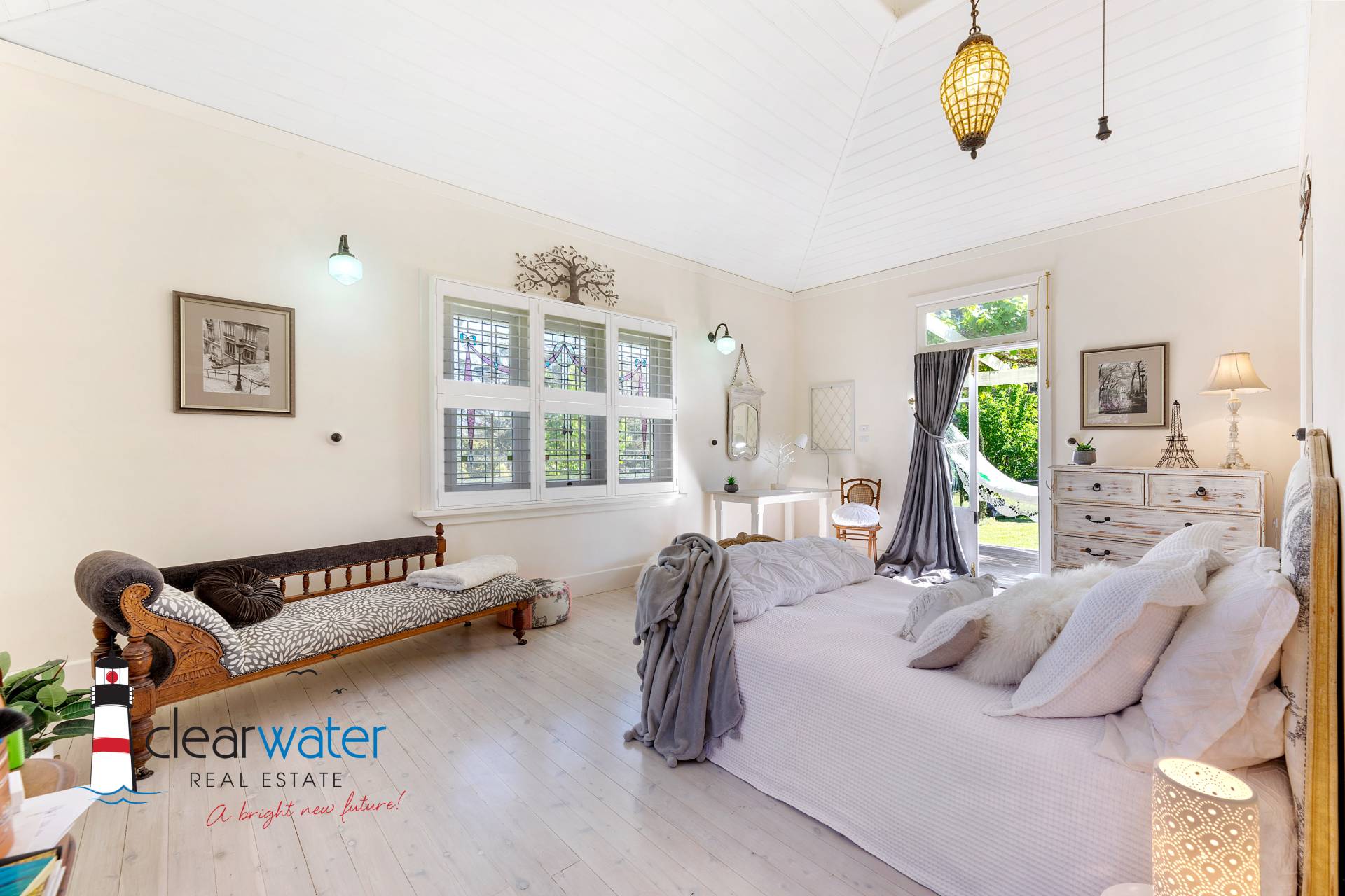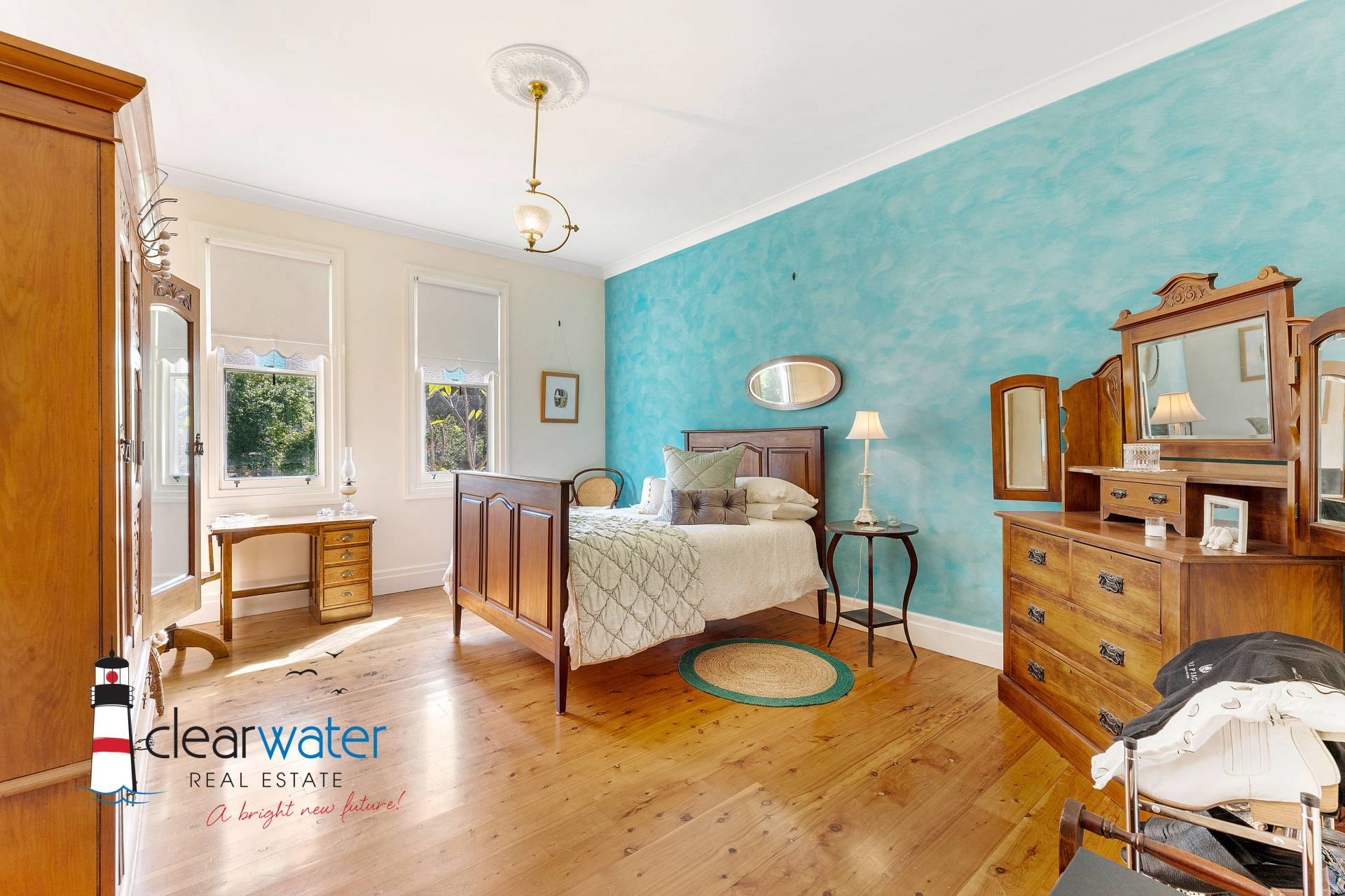 There is an ambience that oozes style and timeless energy throughout this stunning home. A generous master bedroom features a bay window seat, Antique wardrobes and French doors opening onto the front veranda to enjoy summer sea breezes.