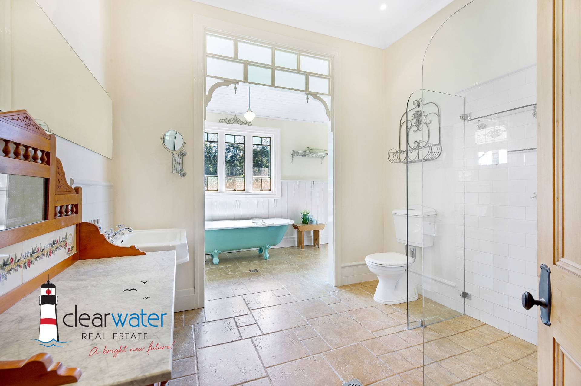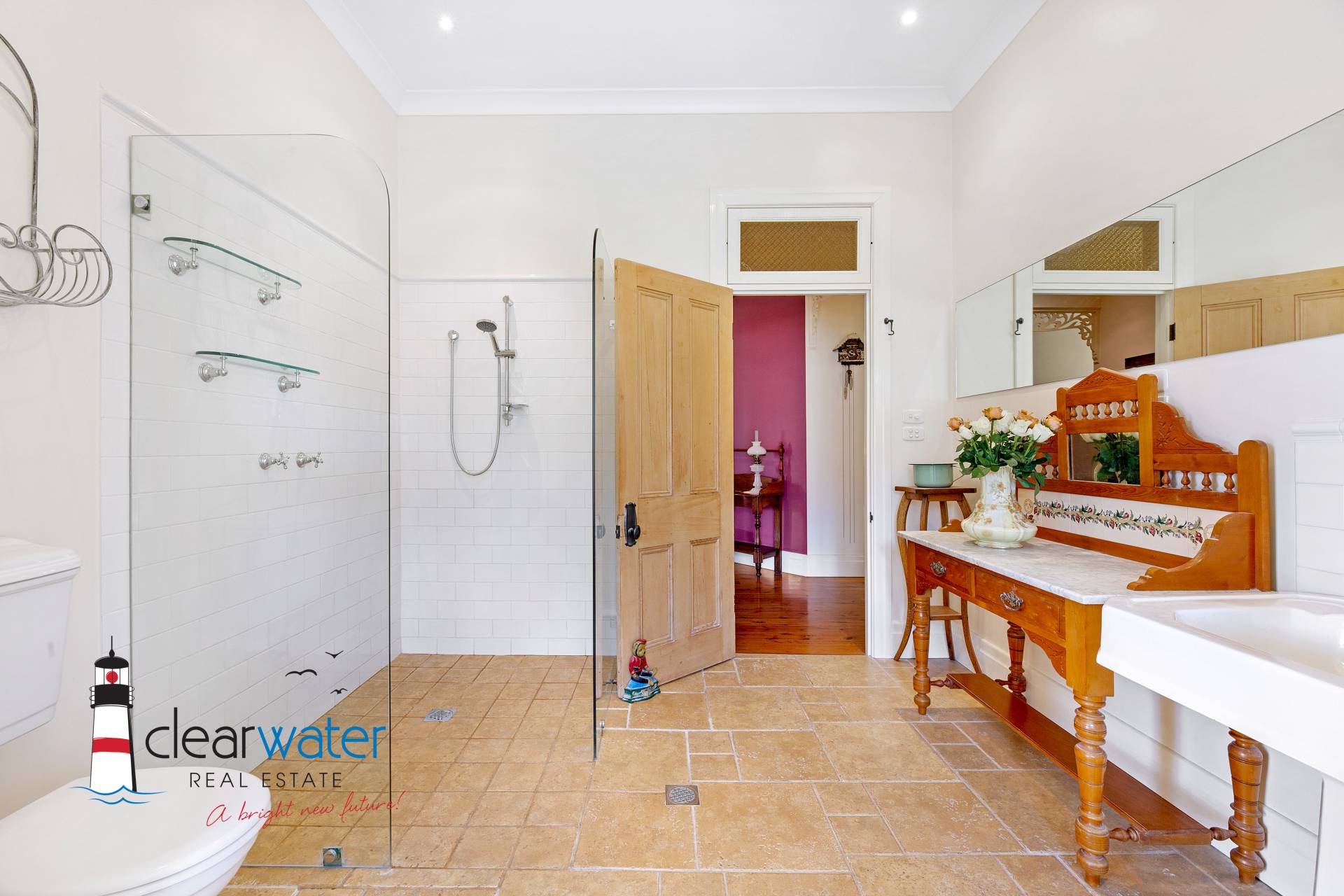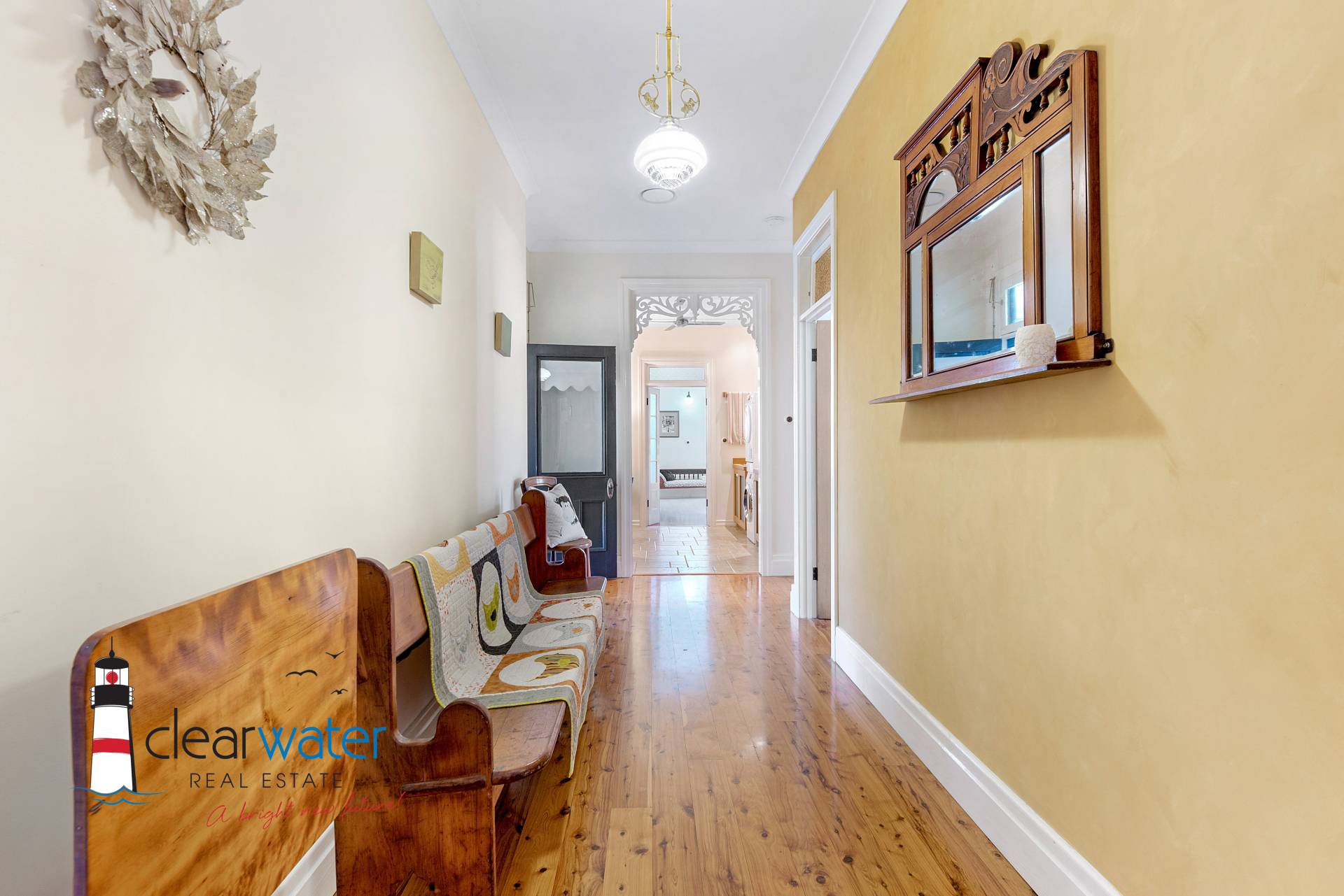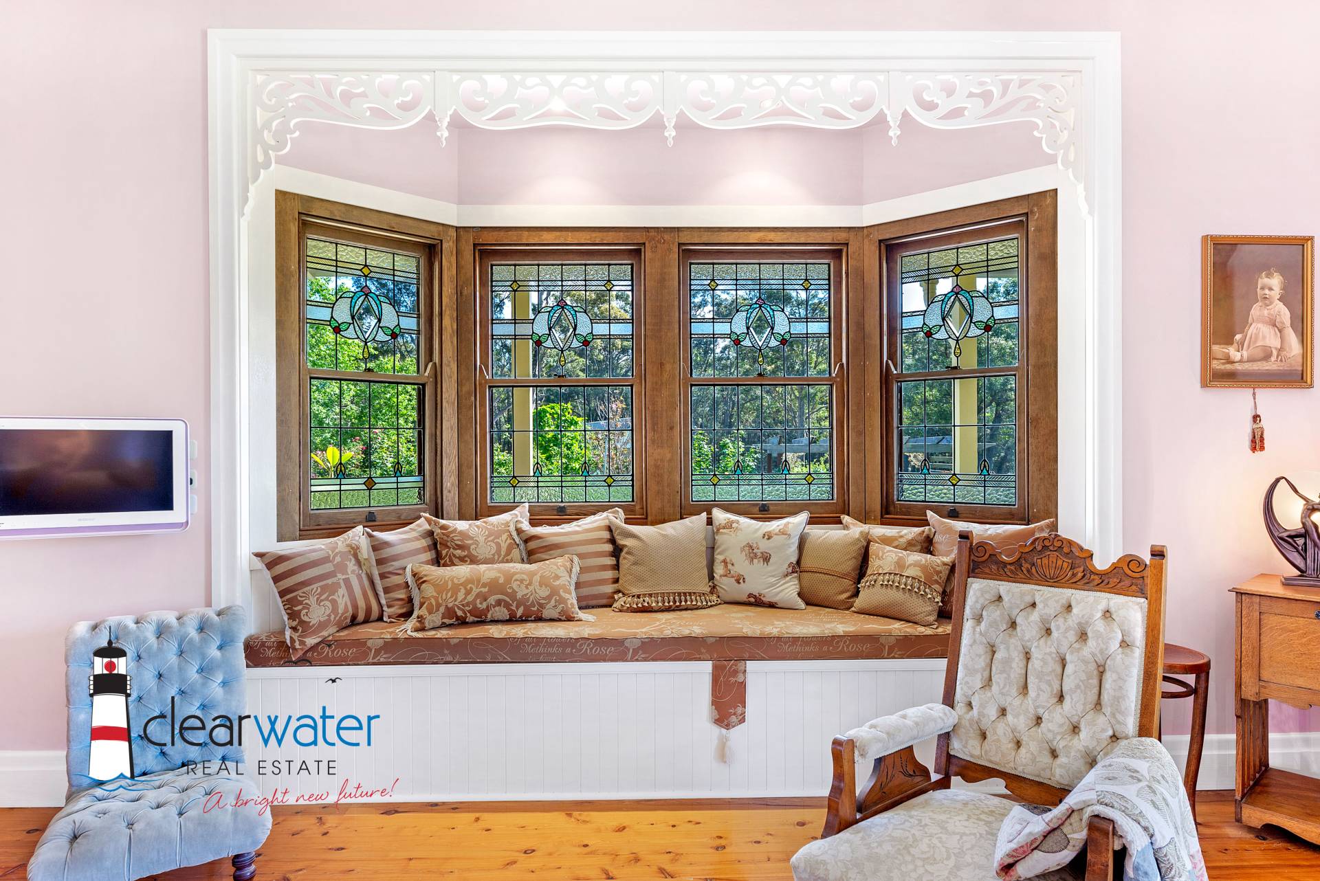There is an ambience that oozes style and timeless energy throughout this stunning home. A generous master bedroom features a bay window seat, Antique wardrobes and French doors opening onto the front veranda to enjoy summer sea breezes.