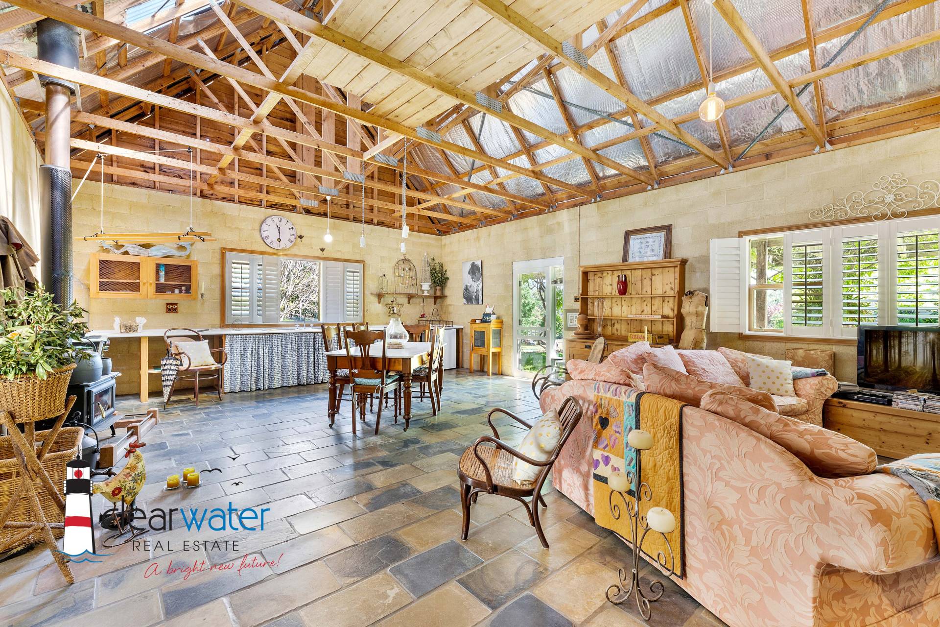 Seamlessly blending timeless elegance with a rural lifestyle, the home offers expansive family living, including a separate ‘barn’ for overflow accommodation.