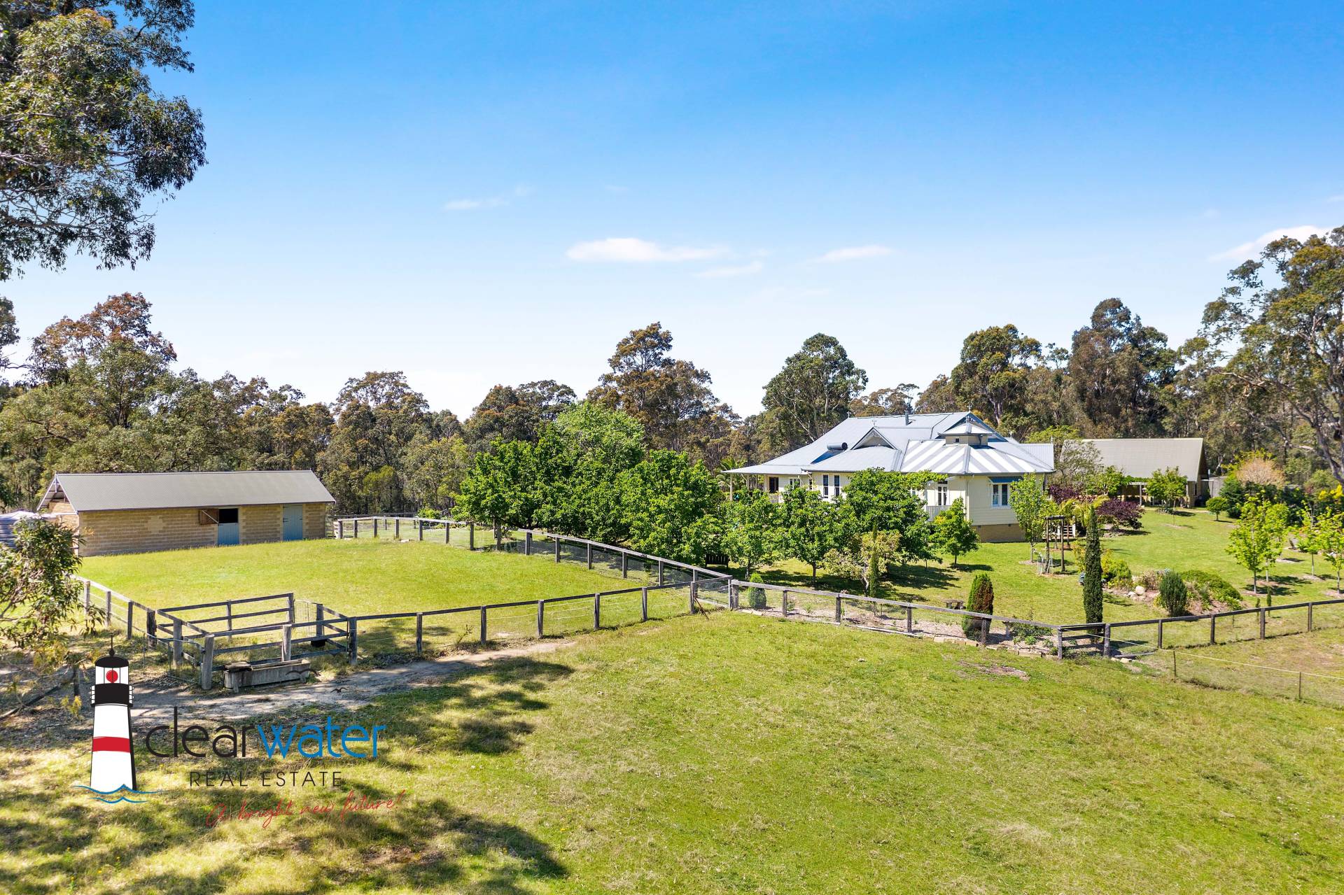 Extra features include: Stables & horse shelter; shower room & toilet off the carport adjoining the barn; basement cellar; enclosed vegetable garden; orchard; chook yard; five fenced paddocks in total; your own natural bushland in which to wander and explore; and approximately 150,000 litres of water storage and a ¾ megalitre dam both with water pumps – the dam being a haven for ducklings every spring!