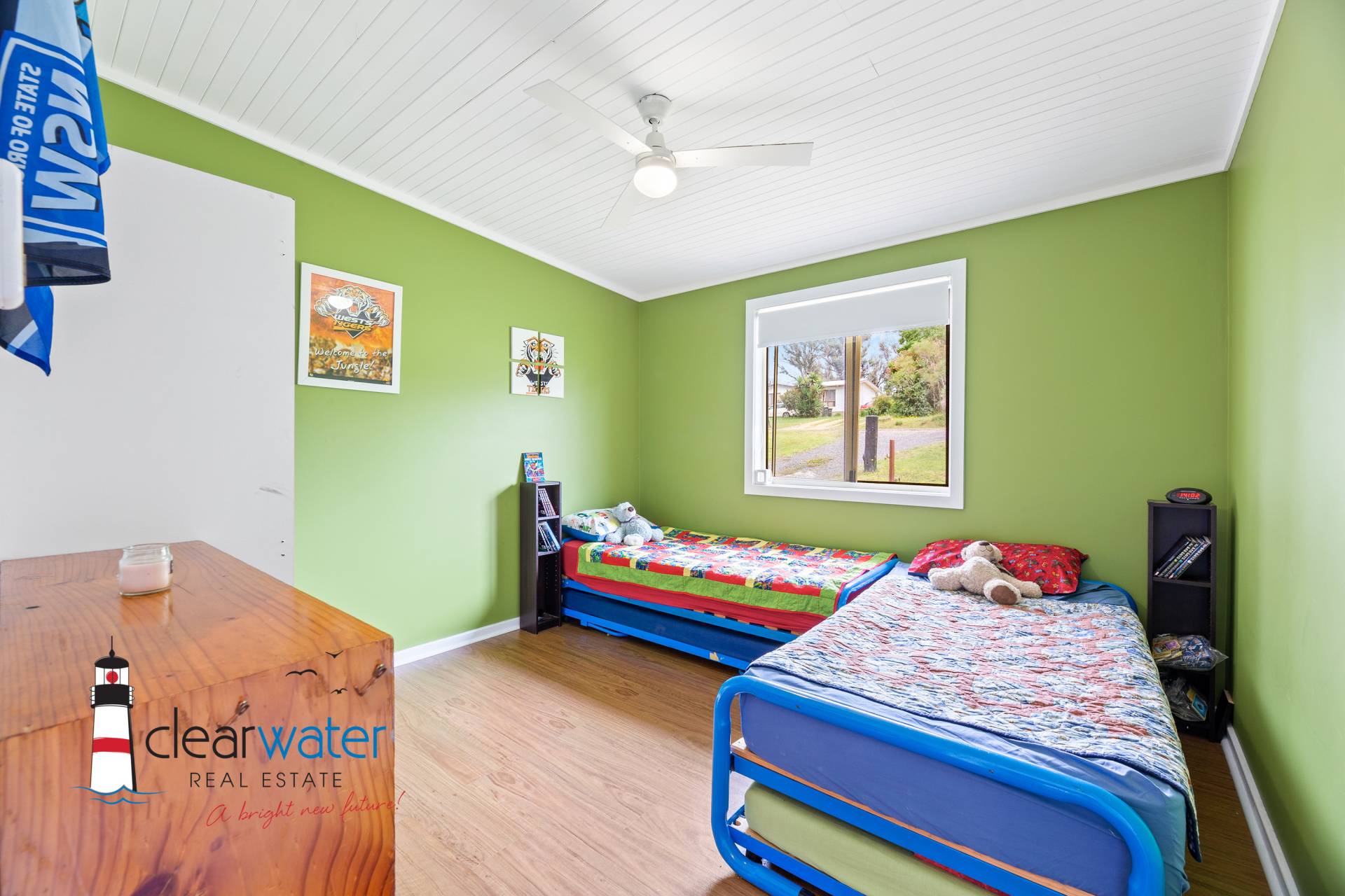 This gentle sloping block is mostly a blank canvas with some easy care gardens. If it is storage you are looking for, there is a huge amount of under house storage which is ideal for the trades person, or a place to put your mower, trailer and tools.