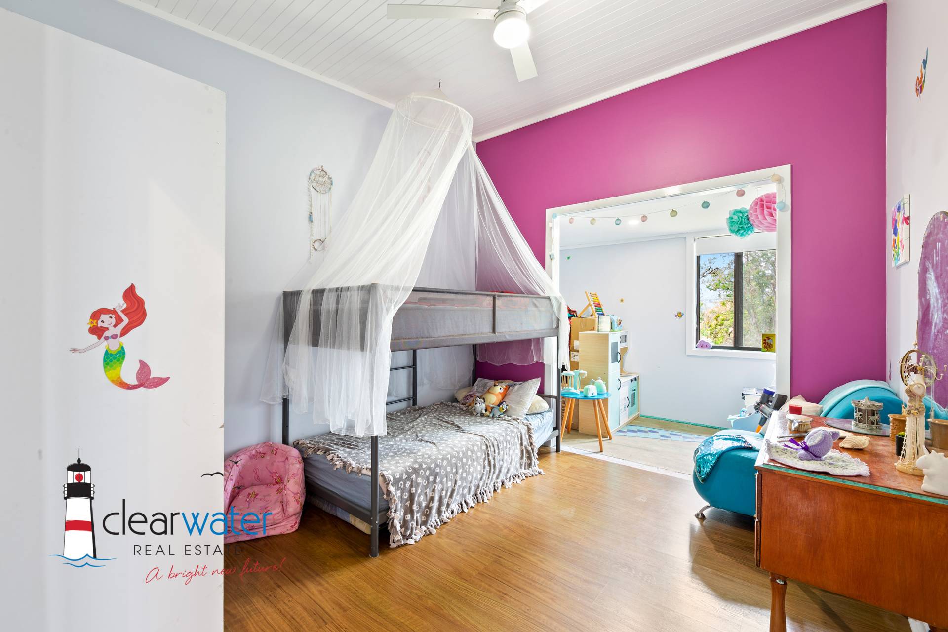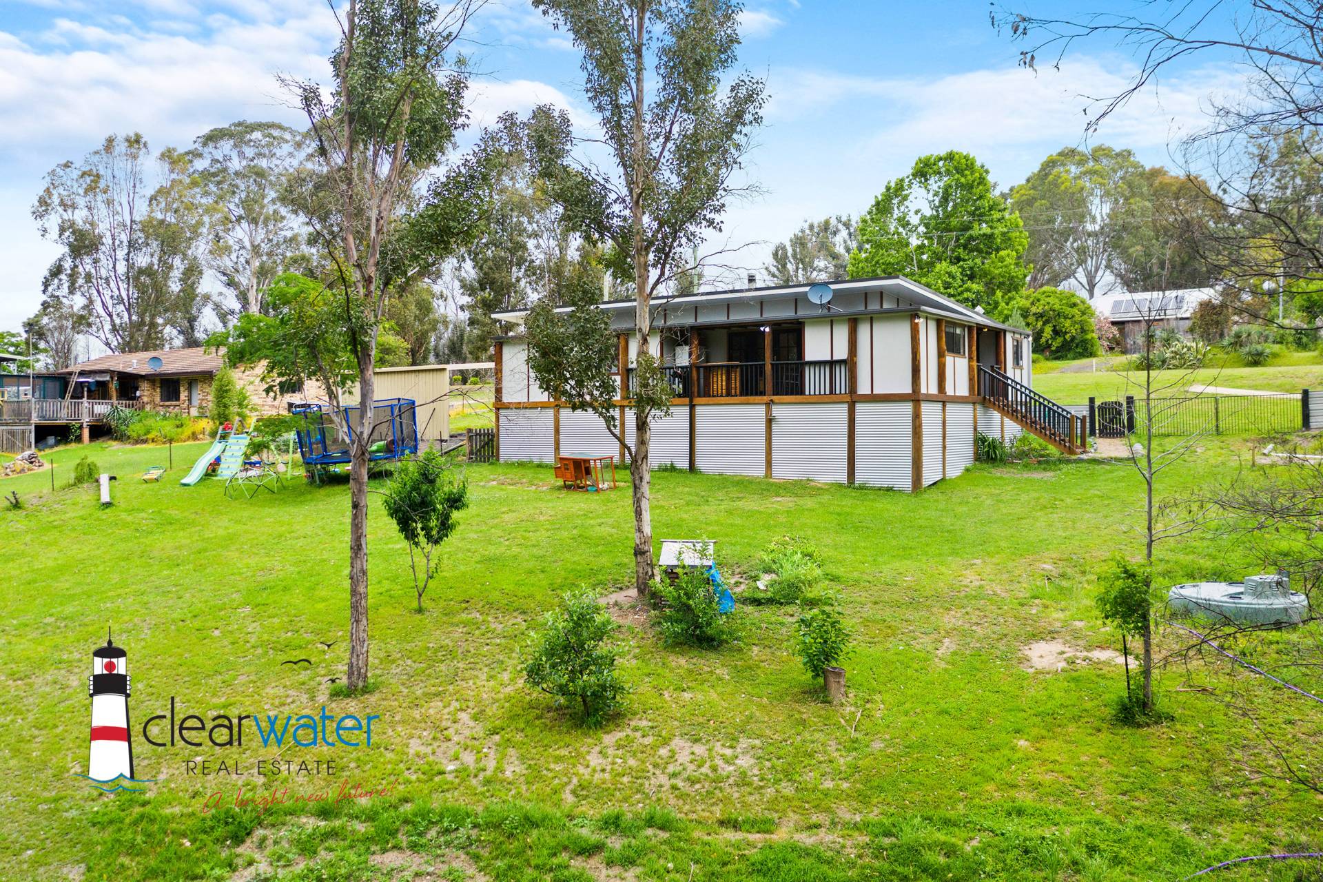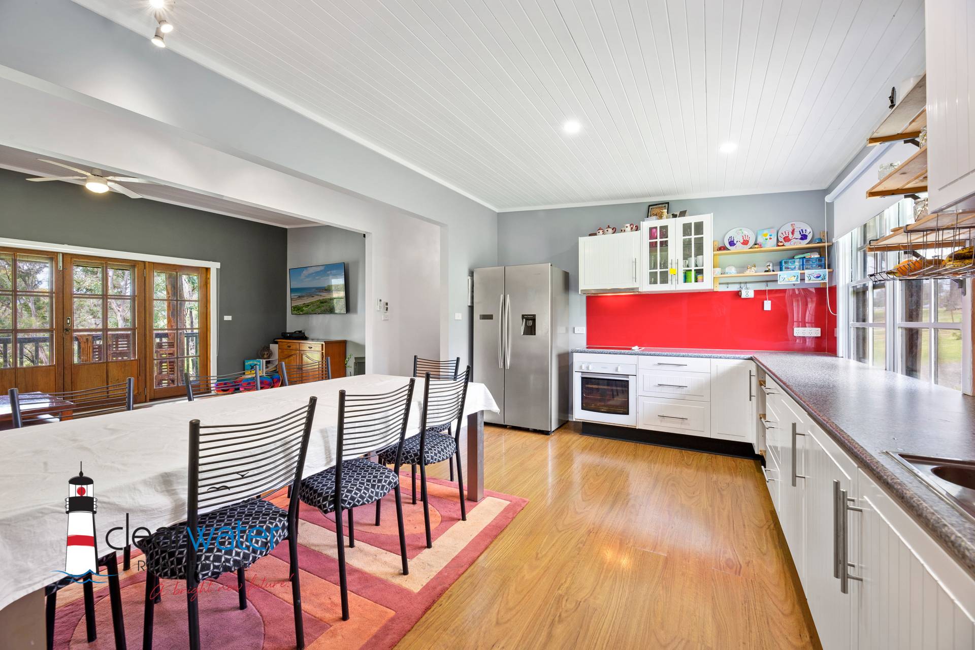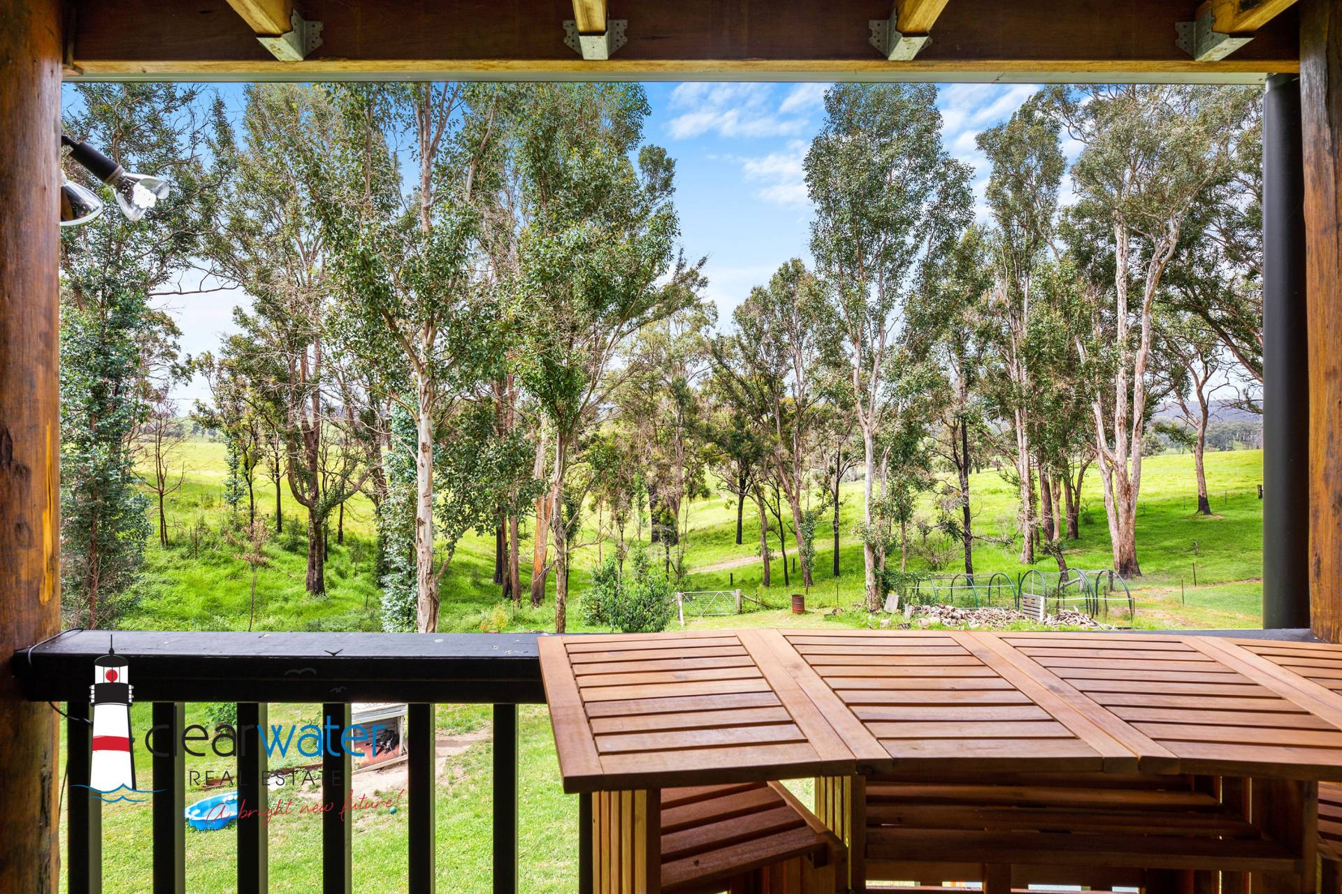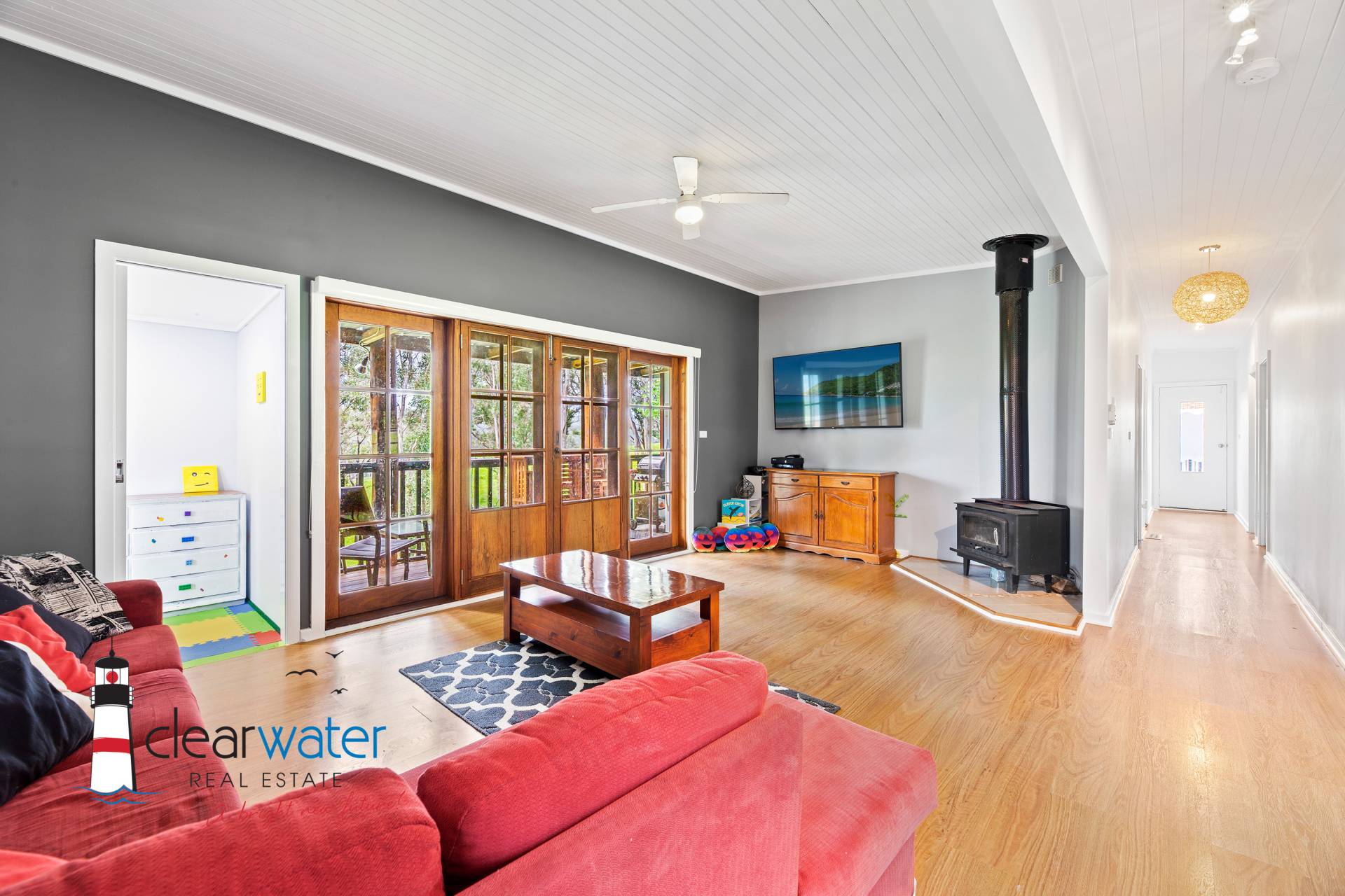 Featuring a central hallway with easy access to the generous sized bedrooms, large combined laundry & bathroom, open plan lounge, eat in kitchen and walk in panty. The master bedroom has an ensuite, and one of the bedrooms has an extra "play" space for the children. Off the lounge room is a covered north facing deck with a desirable northerly aspect overlooking farmland. The spacious living area has a reverse cycle air conditioner, slow combustion wood heater and a separate children's play room.