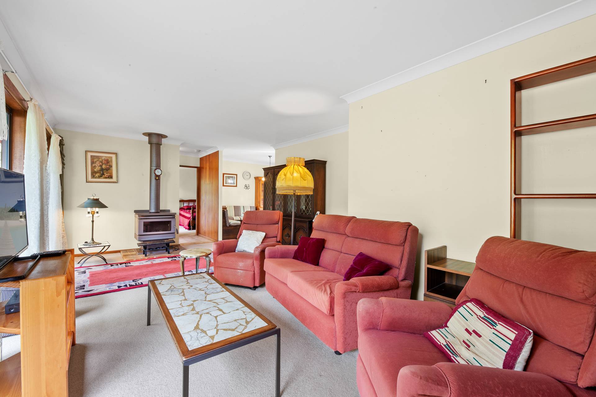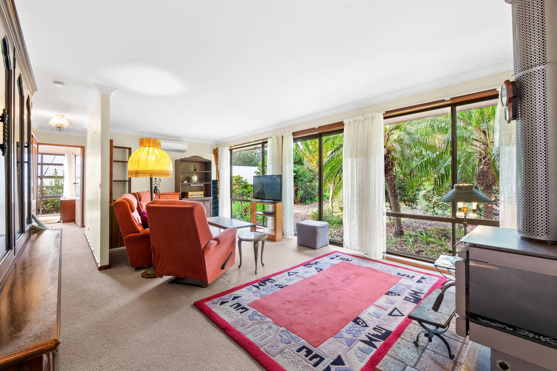 The large lounge room has a wood heater, a reverse cycle air conditioner and sliding doors that open onto a large private front garden, creating a wonderful living space all year round. The combined kitchen and dining room opens onto a small deck area and the spacious back grassed yard and then onto the bush reserve. All three bedrooms are a good size, with lovely outlooks into the gardens and two have built in robes. The 3-way bathroom is very functional for a family and is alongside the laundry.