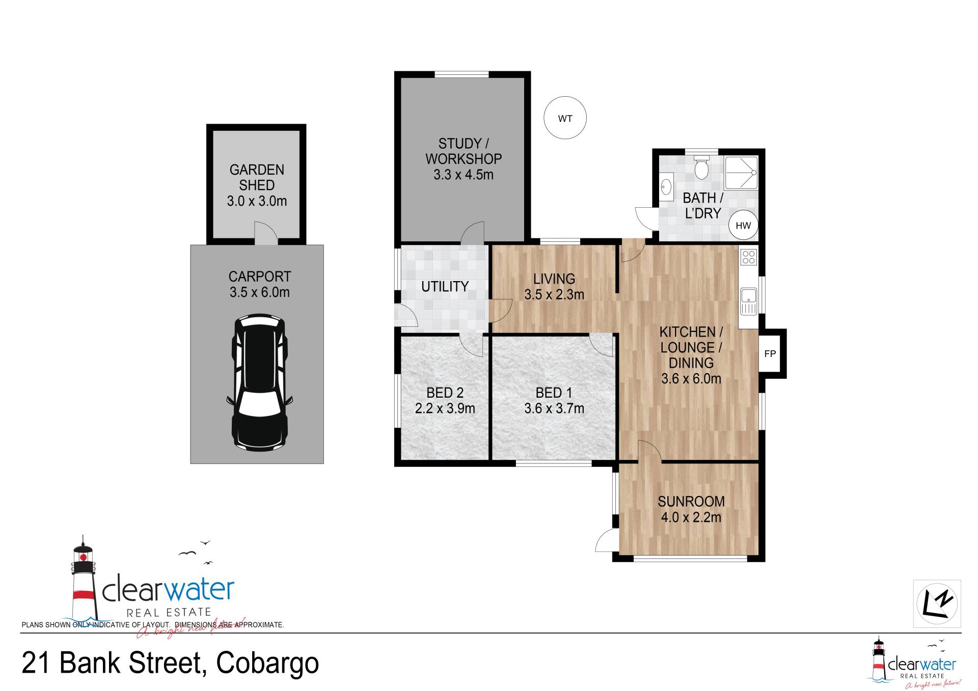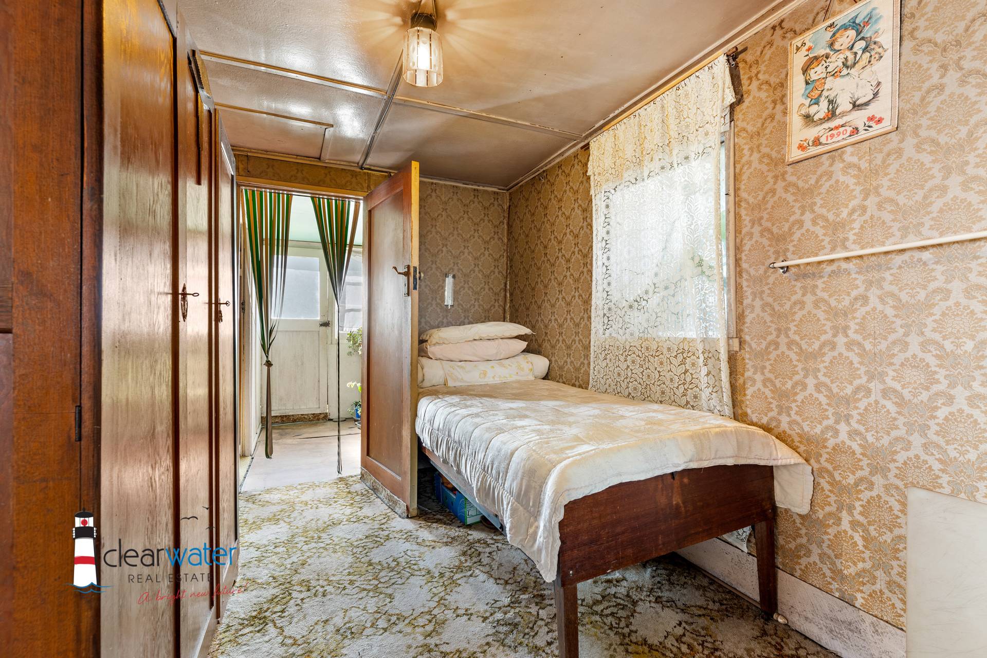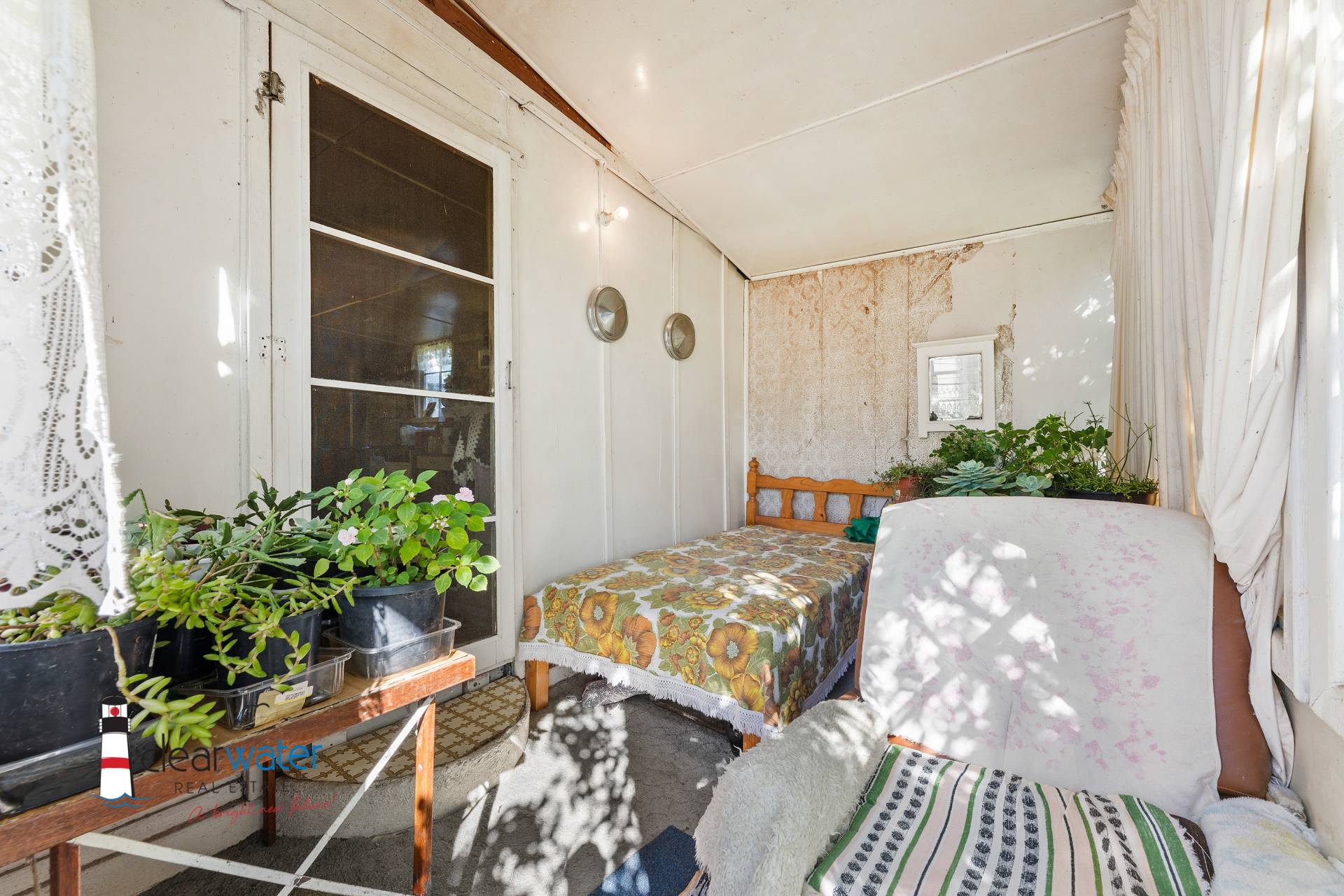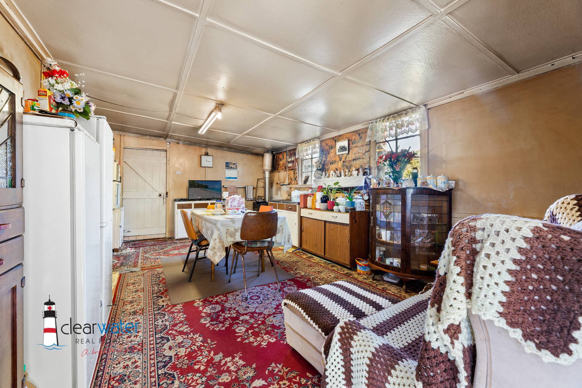 Features: Glassed in sun room at the entry, open plan lounge dining and kitchen all in one, two bedrooms, study area, large storage/craft room (aka "the pantry"), external laundry with shower and toilet. There is a new slow combustion wood heater which warms the home in winter as well as heating your hot water and allows you to cook on it also and open fire place that the current owners have closed off but easy to get it up and firing again.